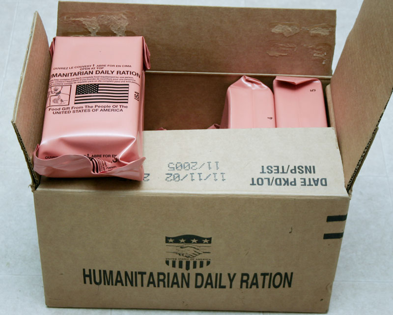 Ok...here are the Humanitarian MRE's we have. My boyfriend was supposed to take a pic of the TTI label but didn't ( hard to find good help these day..jk). Anyway, like i said previously, the TTI label is black but if somebody wants 'em we will sell them for like $25 (have to make our money back) plus whatever UPS shipping is to your house. We get discounts on UPS so let me quote ya.