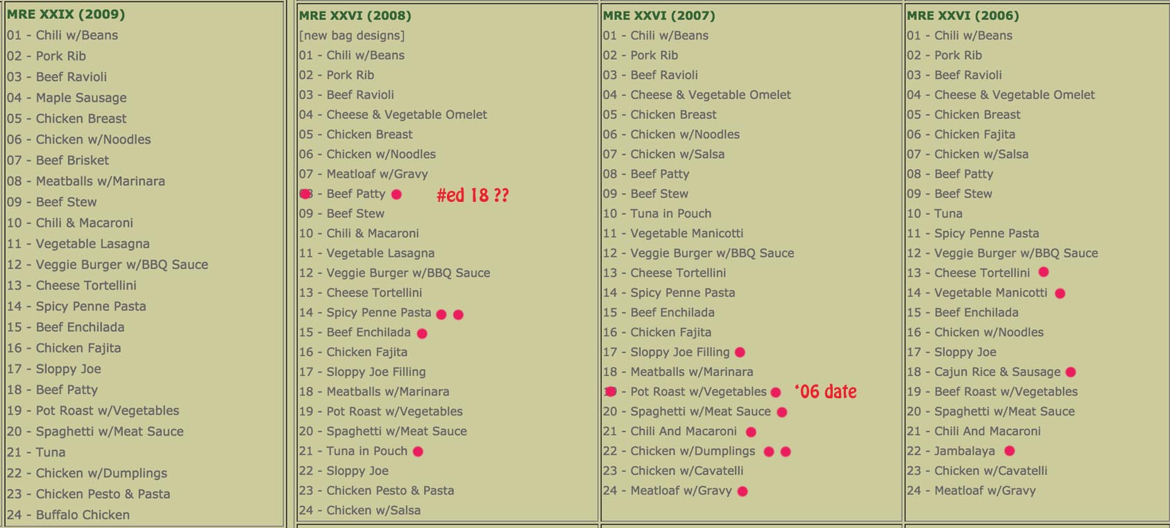 Mixed lot of individual sealed bag MREs in photo... can go "any-or-all":