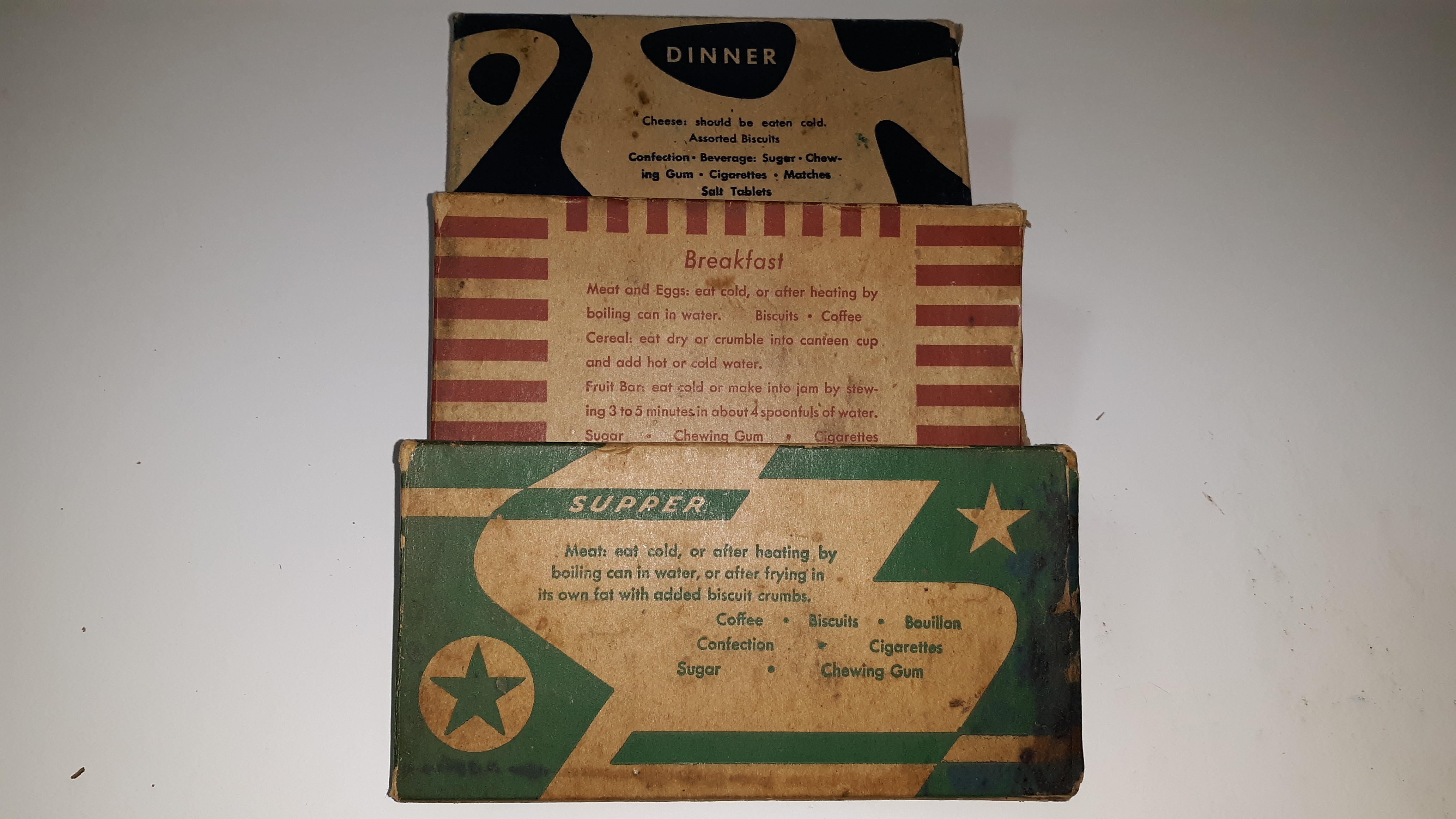 First i would like to say that i am some what new to k rations and c rations and mres. What i need advice on is i just came into a complete set of 1945 k rations the breakfest unit dinner unit and supper unit i am looking to sell them what would be the best way to sell them sell one by its self or as a complete set any advice would be good thank you sorry for the pics best i can do for now