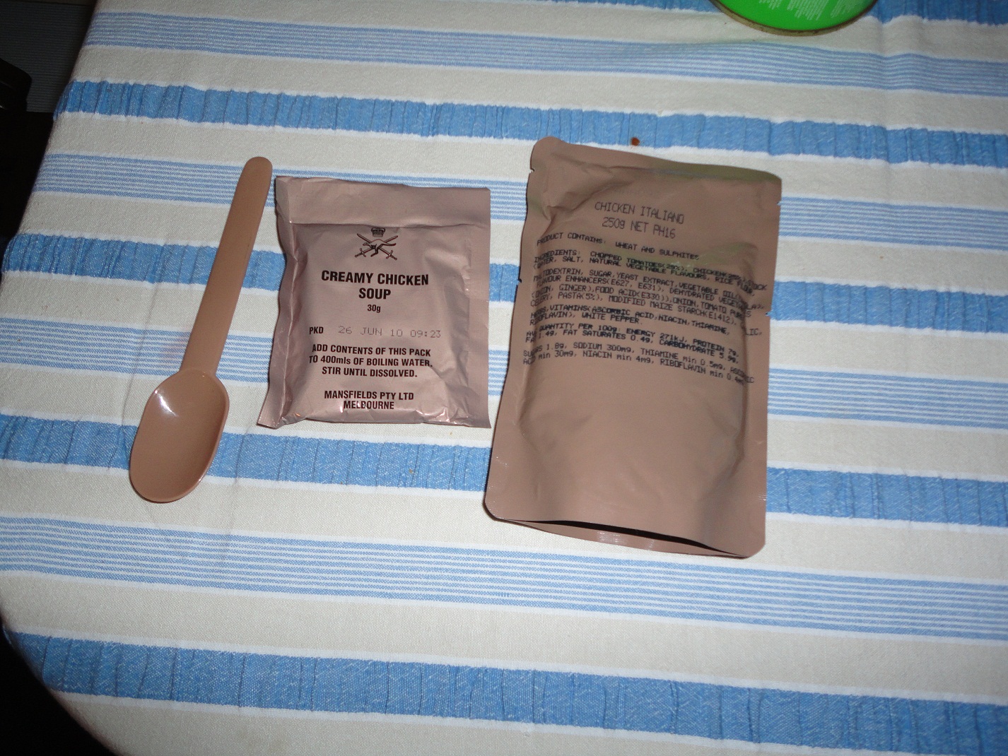 Thanks for the info Yowie, I was afraid that was probably the case. Here in the U.S. you can get them at gun shows but you're on your own if you get sick and they are probably near the end of their shelf life. One thing about the CR1Mis it appears to have alot more snack stuff than our MREs.