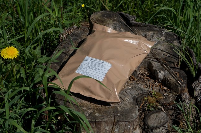 In 2008, Estonia began developing a NATO compatible combat ration pack. In 2010, the Kaitseväe kuivtoidupakk 24H (Defense Force dry ration pack, 24 hour) was fielded. Packaged in a tan plastic bag, it contains food & supplements for 1 soldier for 24 hours. The bag weighs between 1428 g - 1575 g.