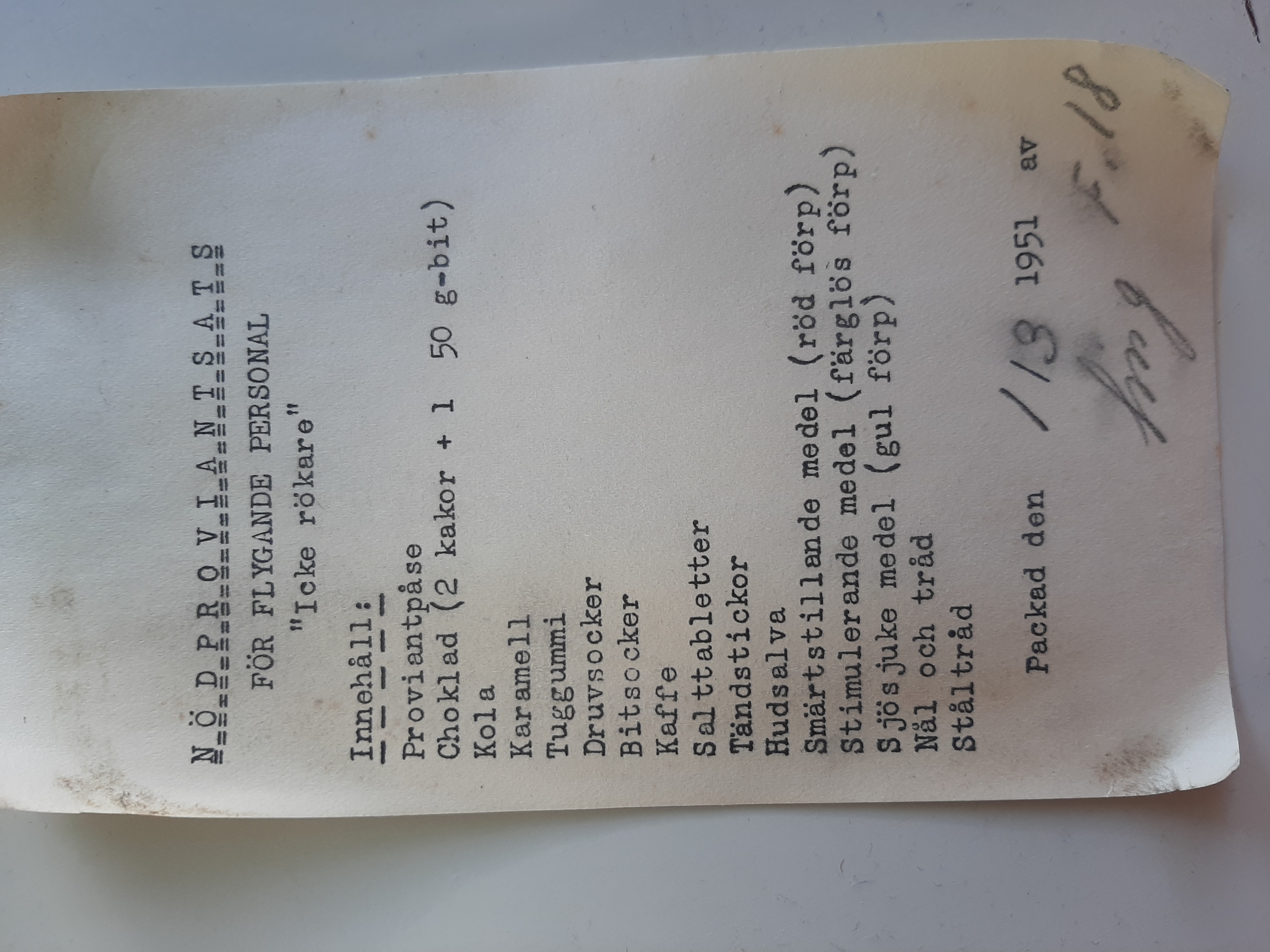 Re: 1951 Swedish Emergency Flight Ration
