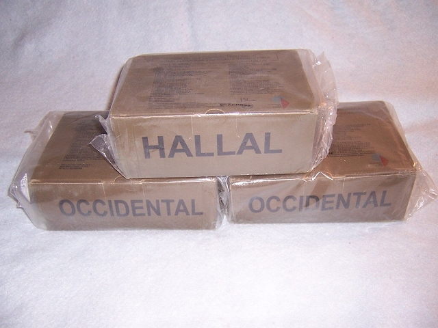 It looks like the UN feeds its peace keepers with rations from the members countries specially France. Also it depends of the mission. And yes "Occidental" is to distinguish them from "Hallal"...