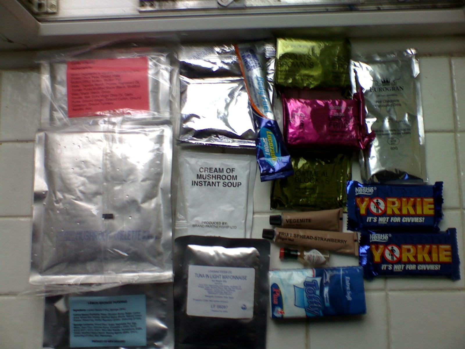 Should be interesting to see what it is anyway. Even if its a mixture of different packs £6.00 is a good price for a UK pack, thats what my local surplus store sold them at... can't get any at the moment, there we not any at the surplus warehouse at his last visit... reason war in iraq and afgahnistan means they are not surplusing that many now as they are being used more.