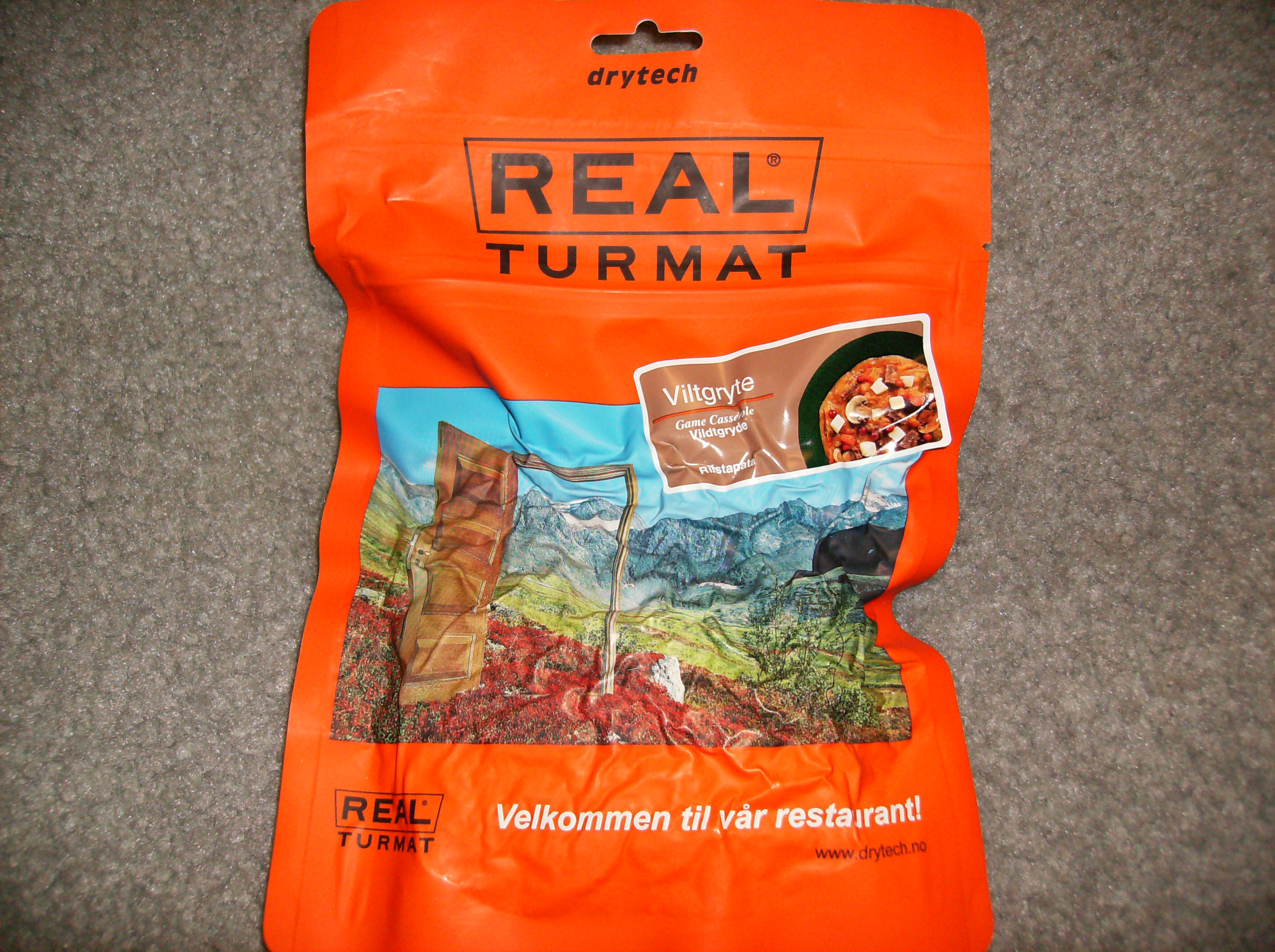 The meal I had was the "Game Casserole" or Vildtgryde. The packaging was a bright orange color and about as tough as the packages that the military meals come in. Also I figure if your lost then this can be used as a signal panel for rescuers to signal your position, :mrgreen: The top has a zipper on it to seal it up when adding the water. Always a good idea.