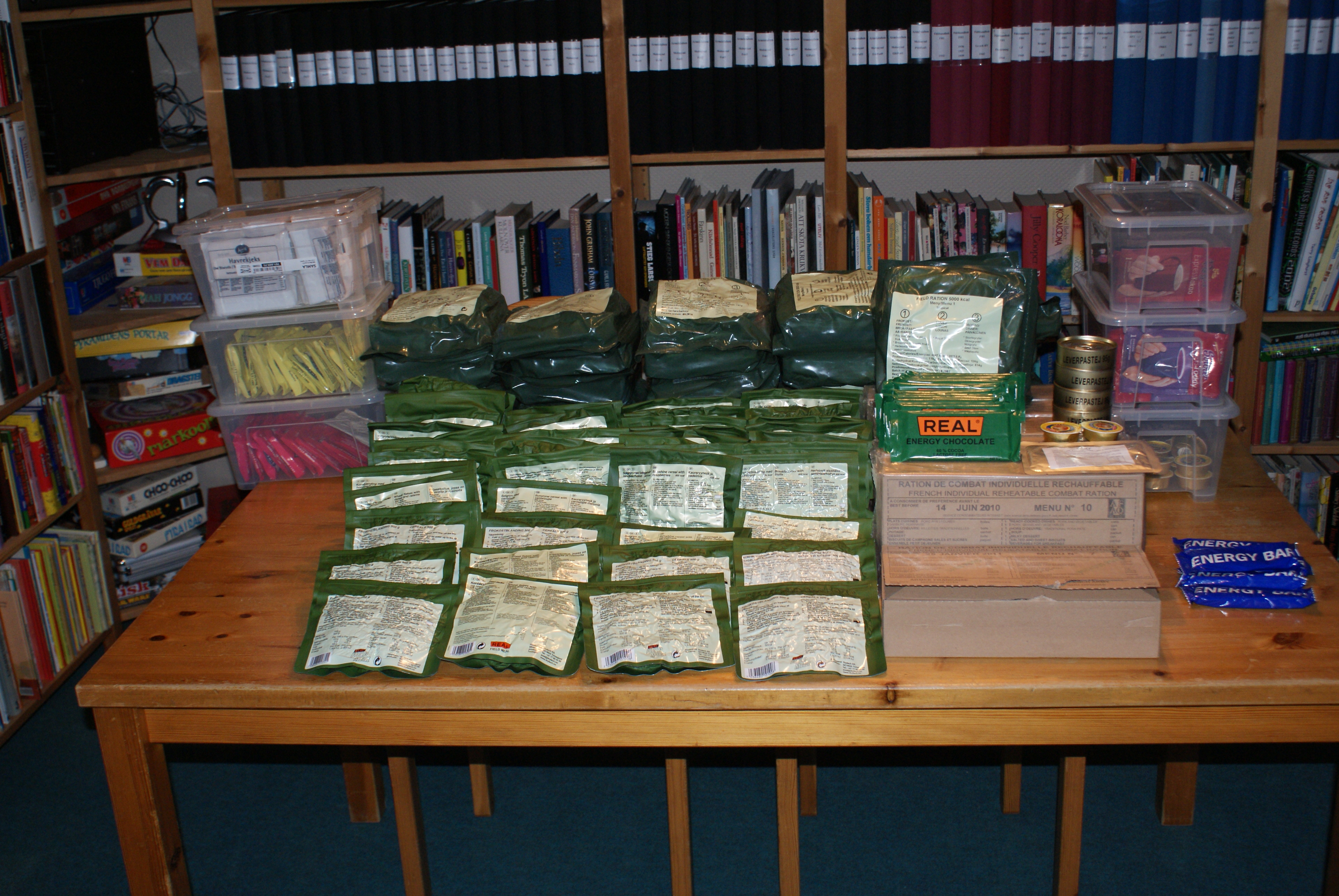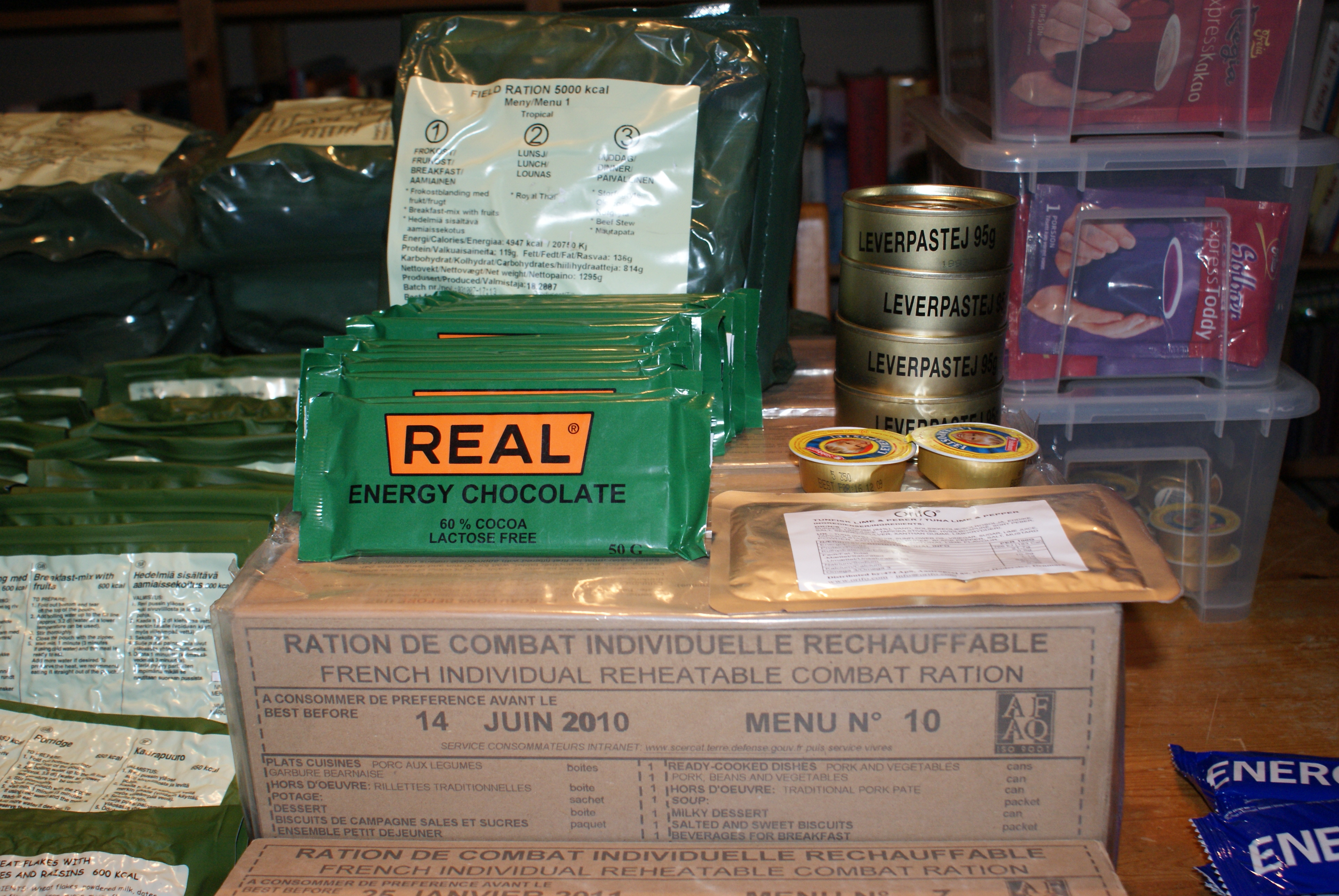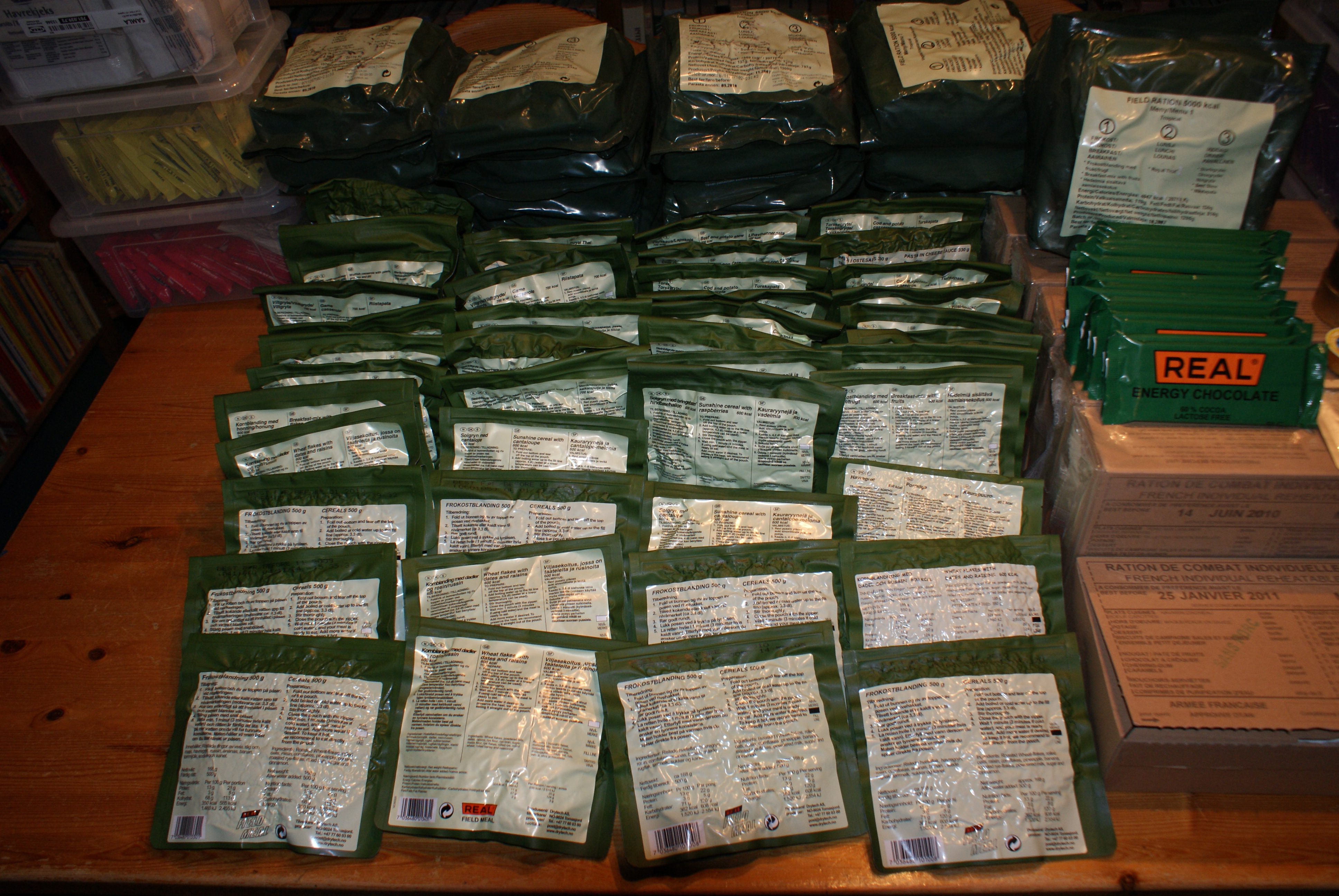 Everything will be based on the Norwegian army rations (normal and 12 tropical ones) except for some french that we will use at the mountain-station.