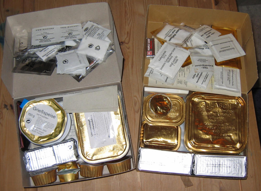A 1995 has these rectangular foil containers like the right one has: They had a shelf life of 20 yrs - don´t worryLuke 1982 wrote:I just picked up a 1995 German EPA Typ 2. Have any of you guys eaten one of these 21 yrs old? It looks to be in pretty good condition but I'm not sure of storage conditions.