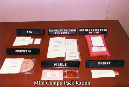 India developed its own modern rations, produced in-country and comparable to modern combat rations used by other nations.