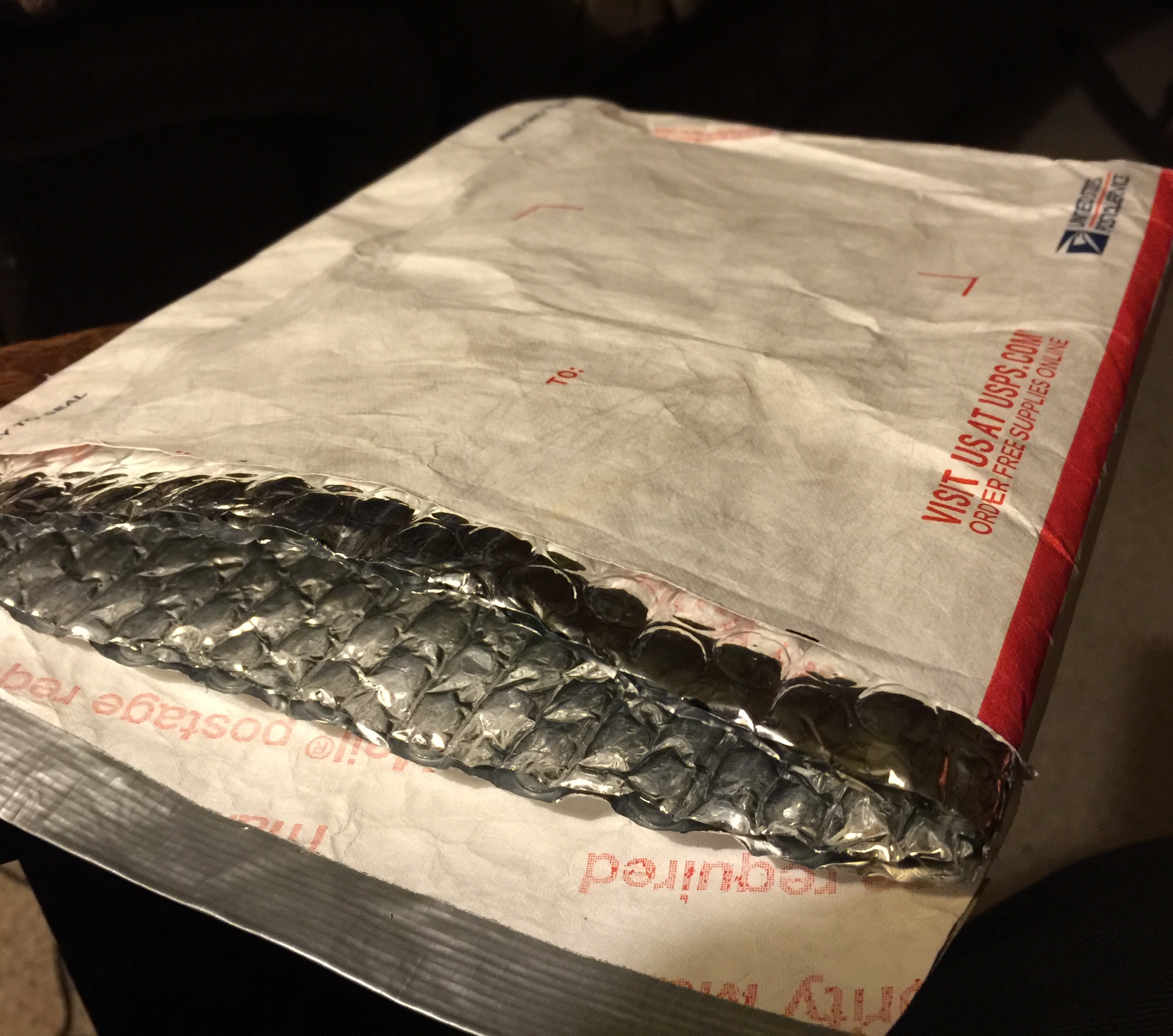 A used Tyvek mailer, lined with the foil mylar bubble wrap used in housebuilding. Lightweight, relatively sturdy, and it seems to increase the efficiency of the FRH's considerably.