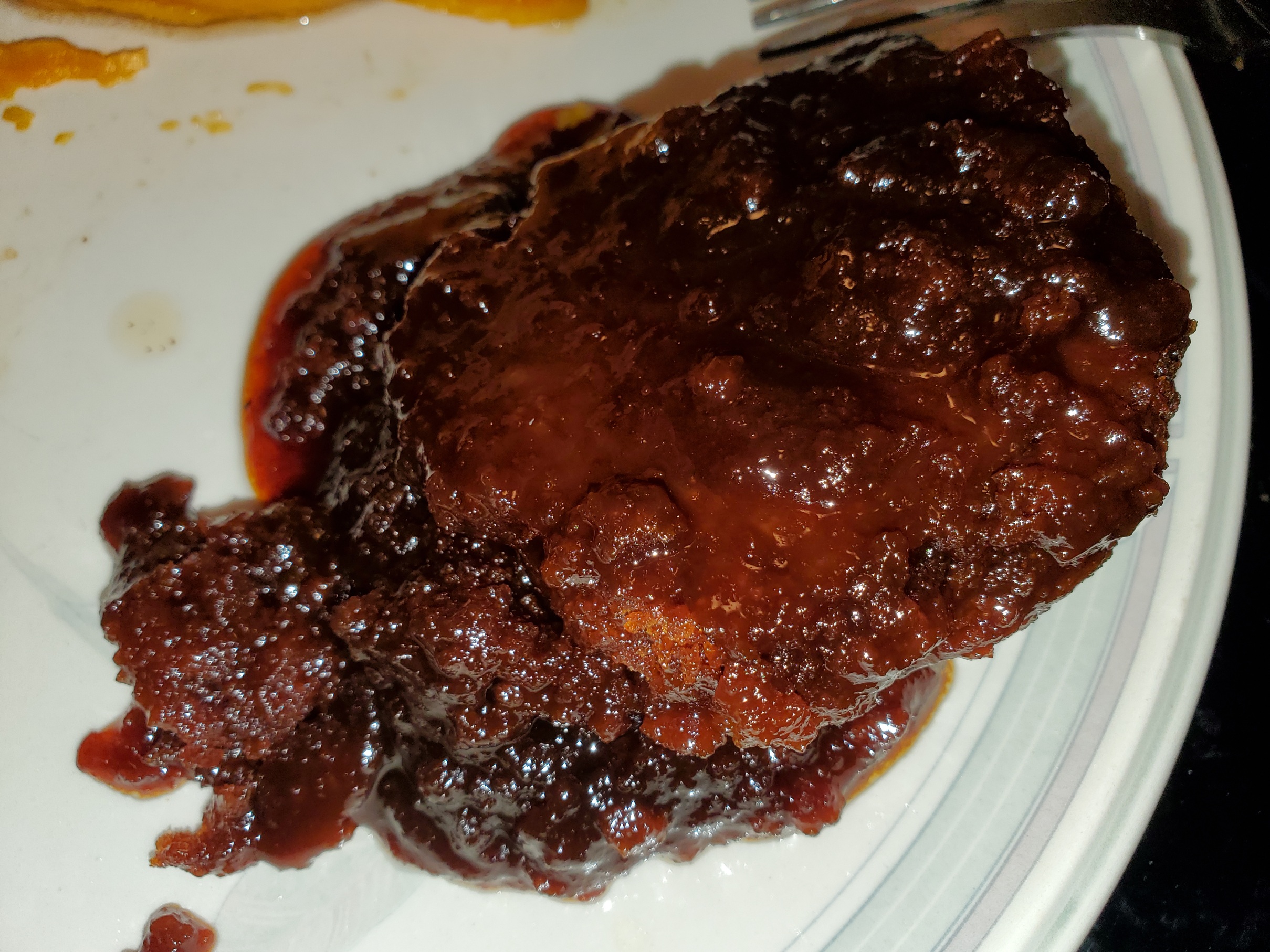 That was really quite good. I microwaved it, mixing it up as I went. I was expecting it to be much more like mollasses, but that was quite a bit more sweet than I was anticipating. Same sort of bread pudding as the other brit desserts, which is quite dense and not amazing by itself. Mixed in with the treacle syrup, it was a dream. Well worth blowing through the last bit of calories for the day, haha. Glad I was ahead on protein before I had this.