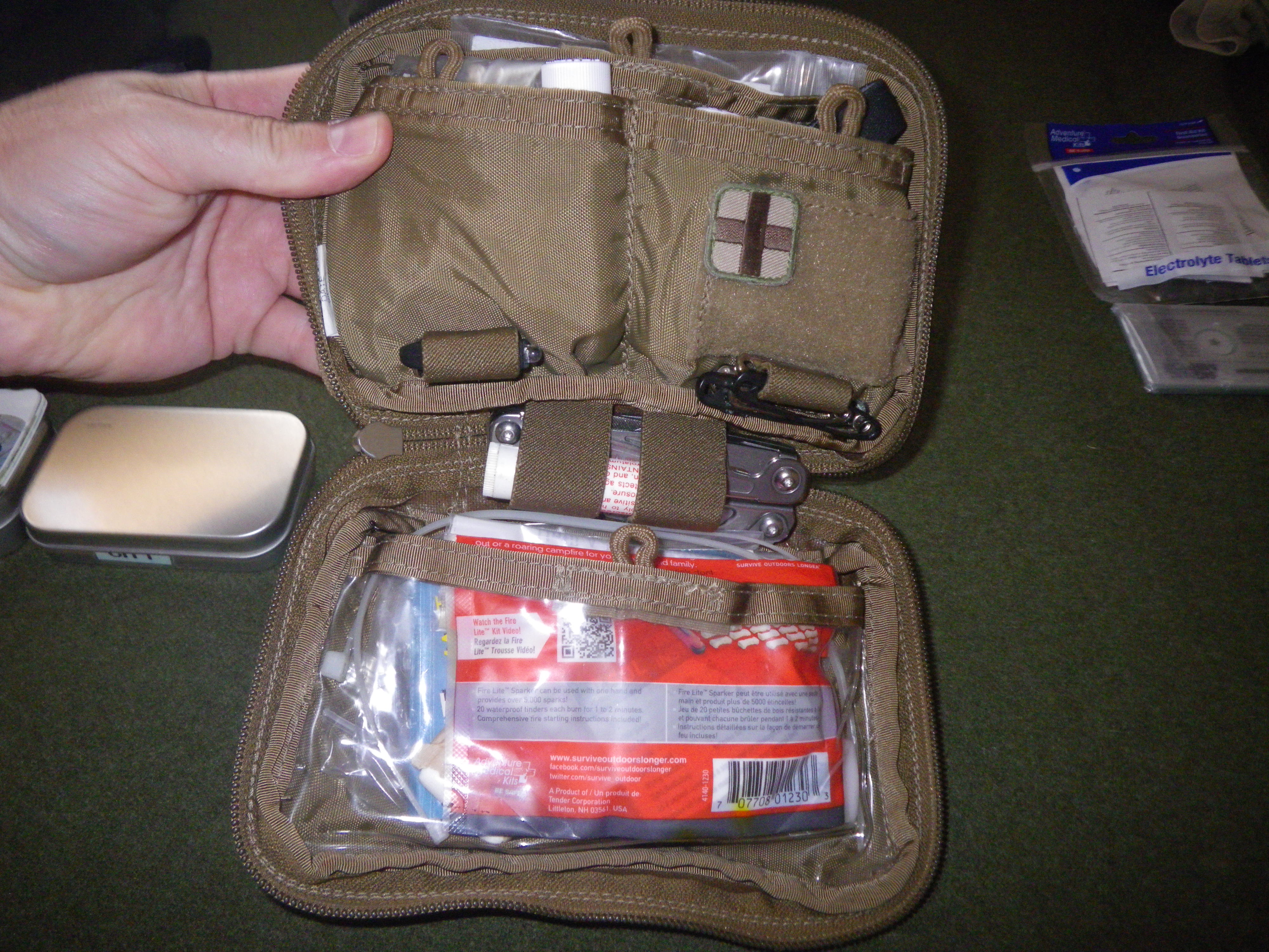 I promised I would post some pics of my kits that I have made up. The biggest one I have is my Tactical Tailor E & E pouch. Took me under a year to test and find stuff that worked and put it in there. Its quite packed now and still undergoing re-evaluation. Thing is its quite bulky and I can't mount it in a lot of places except a cargo pocket or a vest. Unfortunately a vest is not what I take to work or a plate carrier so most of the time it sits in my day pack.