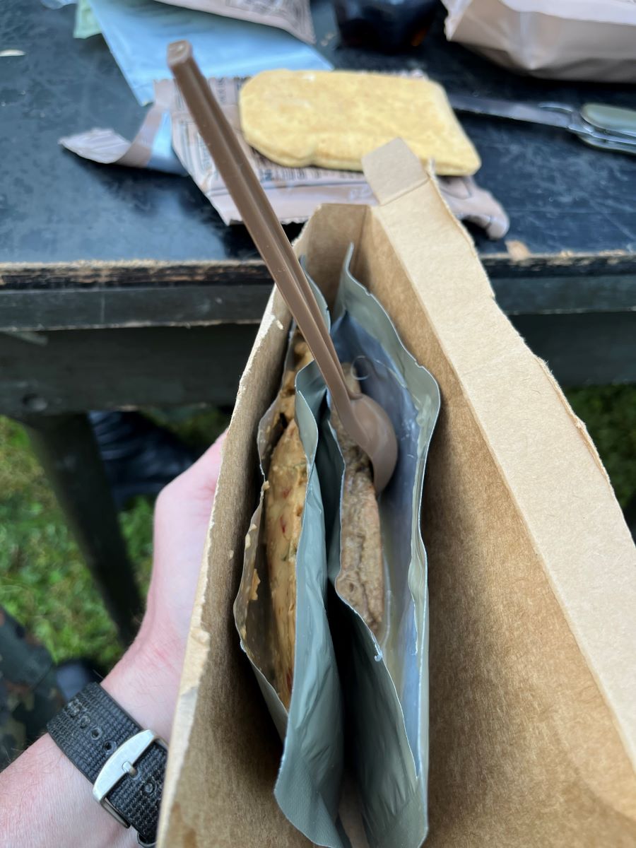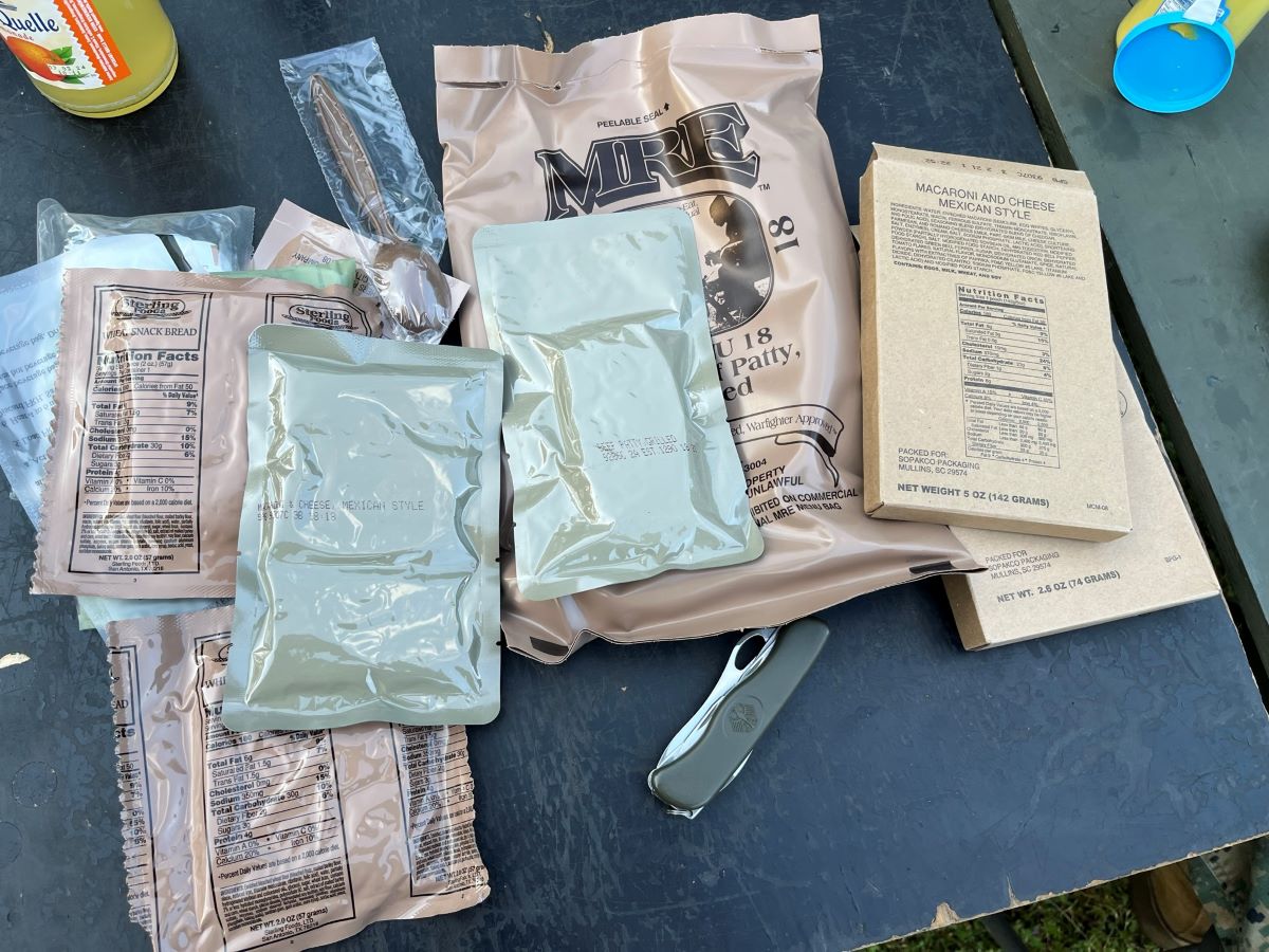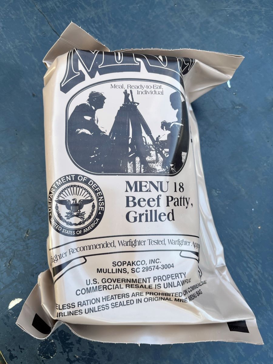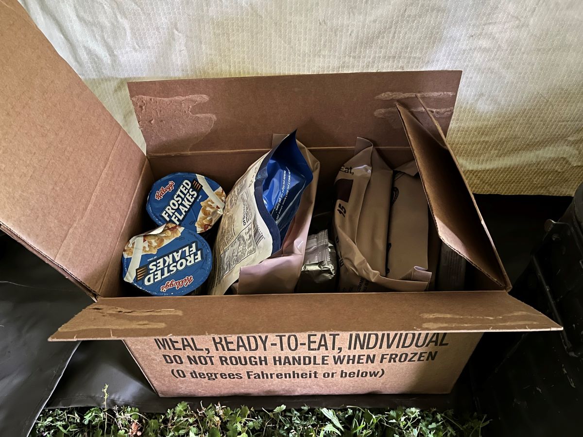 My five days supply, a case of 2009 MREs with darkened TTI sticker.