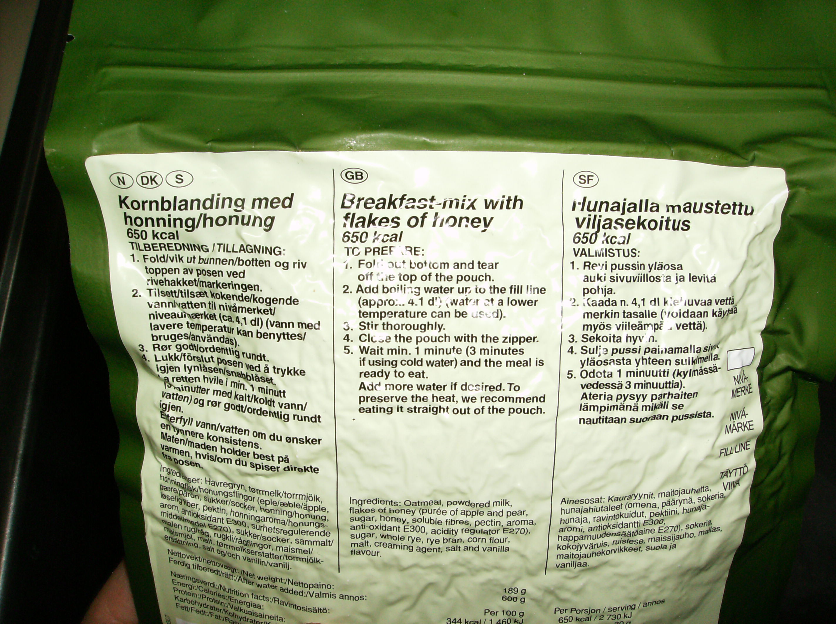 A "handicap" is, you need hot water allways! If you had ever mad a hot beverage with a canteen cup on a tommy cooker, you know what I mean! A MRE, EPa, RCIR etc. could be eaten cold in a pinch. But you can´t eat that dry powder. Same problem with German EPa leicht freezdried entrees.
