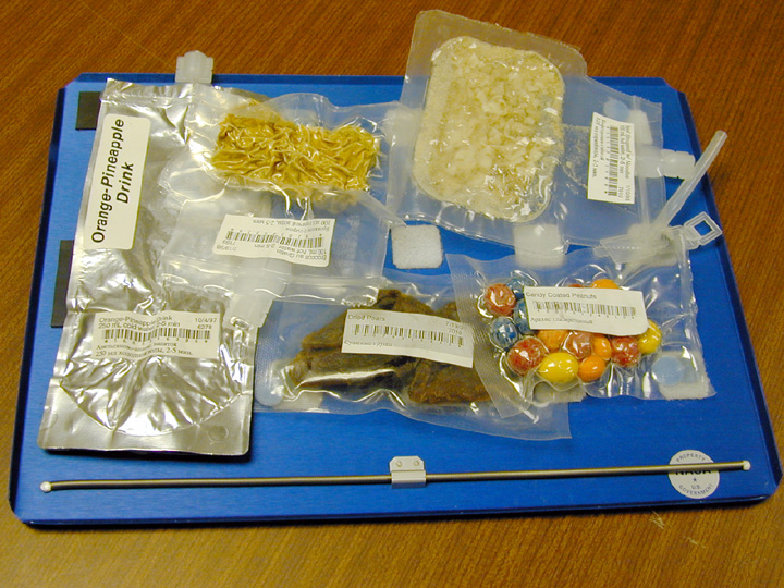 I just had a question. What are those folks eating up there? We don't seem to have any recent space food info. Seems we have 13 persons on the ISS, and they are having technical problems with the commode. I was just curious. After all, much of the current US ration technology came from the '60's space program.