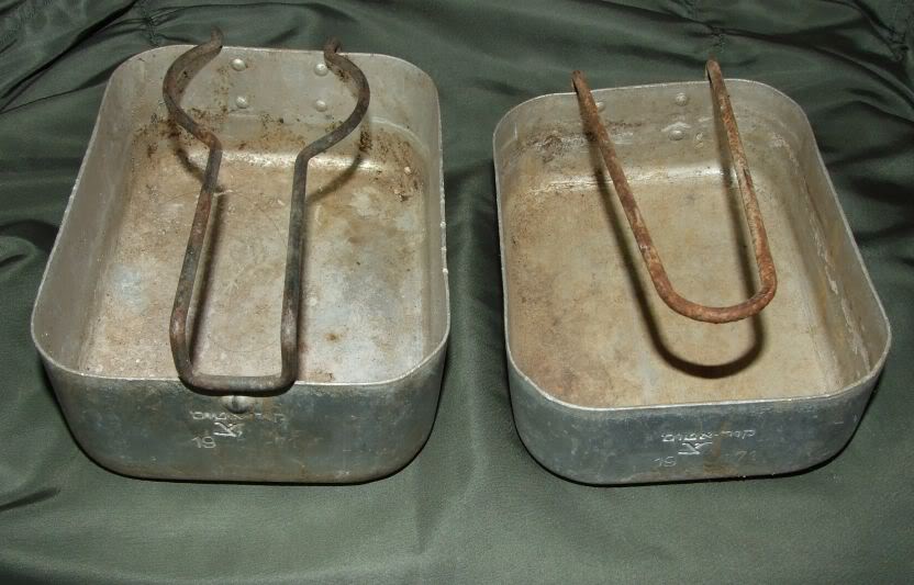 Kinda rare (and seem to be rarely used), but the IDF (Israel Defense Forces) issue a British-type mess kit. It is made of heavy, thick aluminum with folding wire handles, They differ by having a large, circular bend in the handle near the pivot of the larger tin.