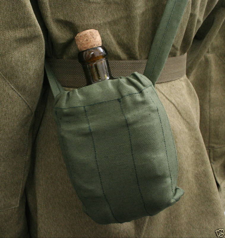 During the first years after the German invasion of 1941, Soviet industry lacked aluminium (reserved for airplane production), so several items of equipment (canteens, detonators, grenades - "Molotov's cocktail" - landmines, etc.) were made of glass.
