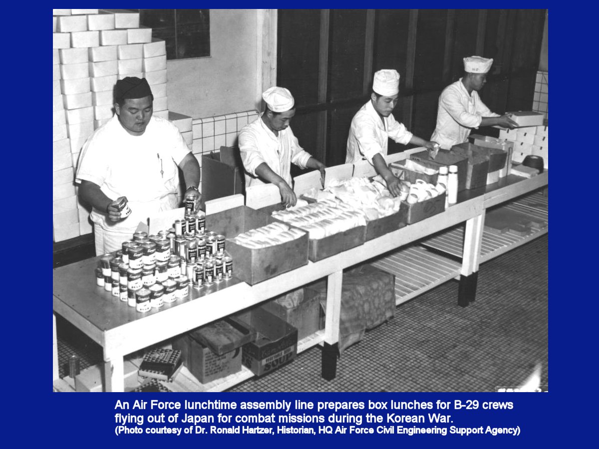 Im guessing now, but I would assume that contemporary USAF B52 and other heavy aircraft meals have progressively kept pace with technology, but retain a similar structure and feel, with microwave facilities and MRE -type components replacing the old In Flight food packet individual.