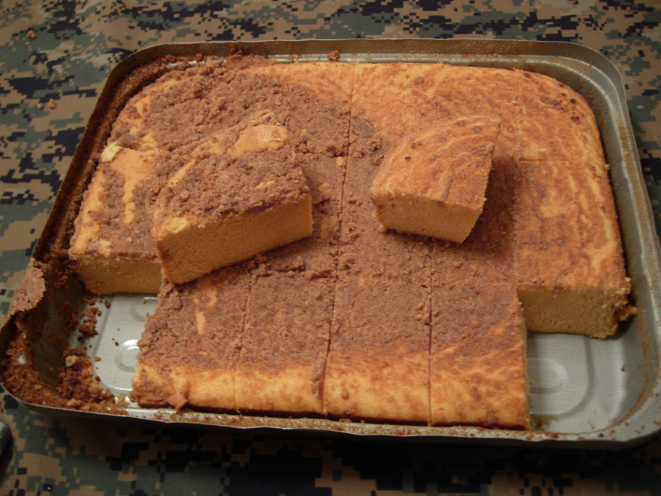 I also like that metal tray cakes! Their shelf-life is very good (I ate some 12 year old cake and it was still fine) and the taste is typical "US military ration" (like good old MCI cakes). What a pity that they stopped producing them :( !