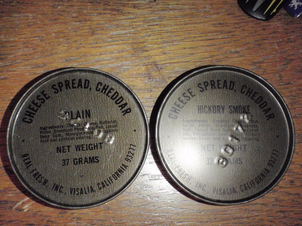 Two Cheese tins, one hickory smoke Code 80172 and one plain Code 80126 - both made by Real Fresh Inc. CA - Year??