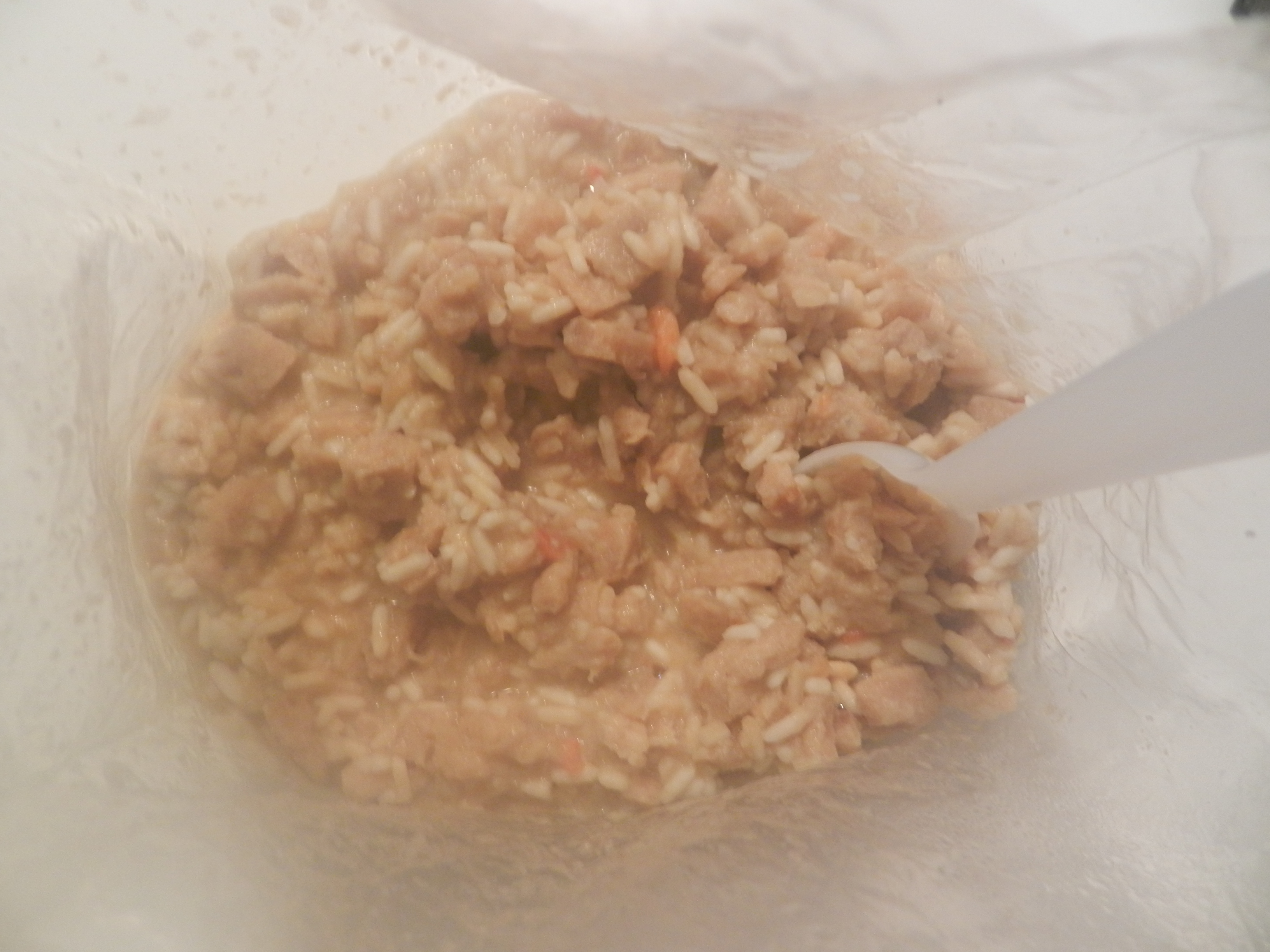 Add the allotted amount of hot water and you immediately smell the freshly sealed in time chicken & rice come to life, again.