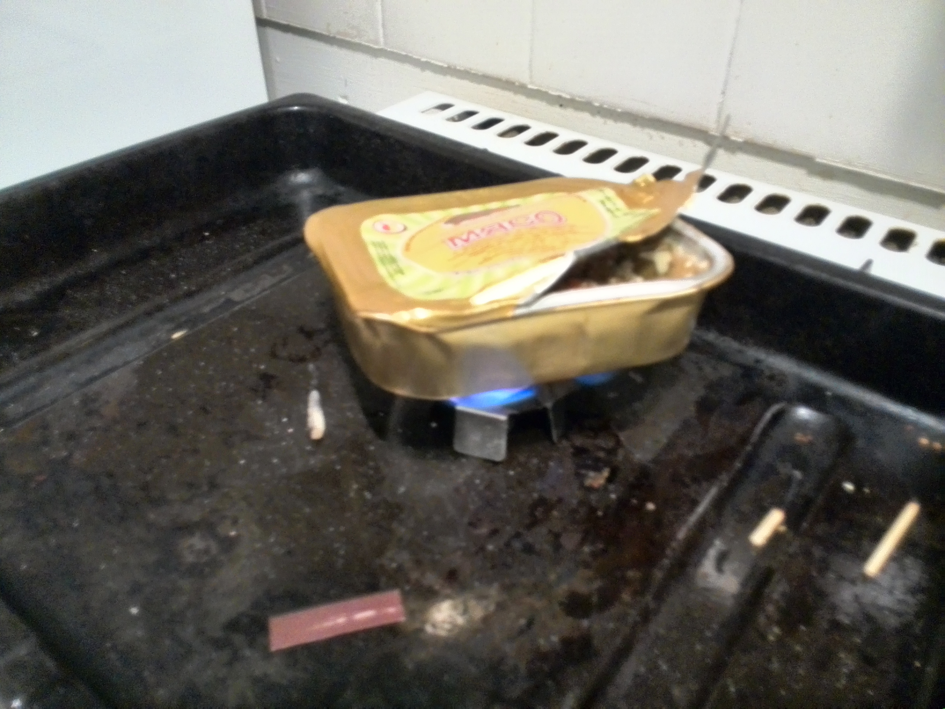Now on to the strangest item on the menu - the pork fat. At least, I think it was pork fat. The translation I got online was 'bacon', but there was no meat to be seen. I decided that the best way to try this would be hot, so I tried cooking it as best I could on the ration heater: