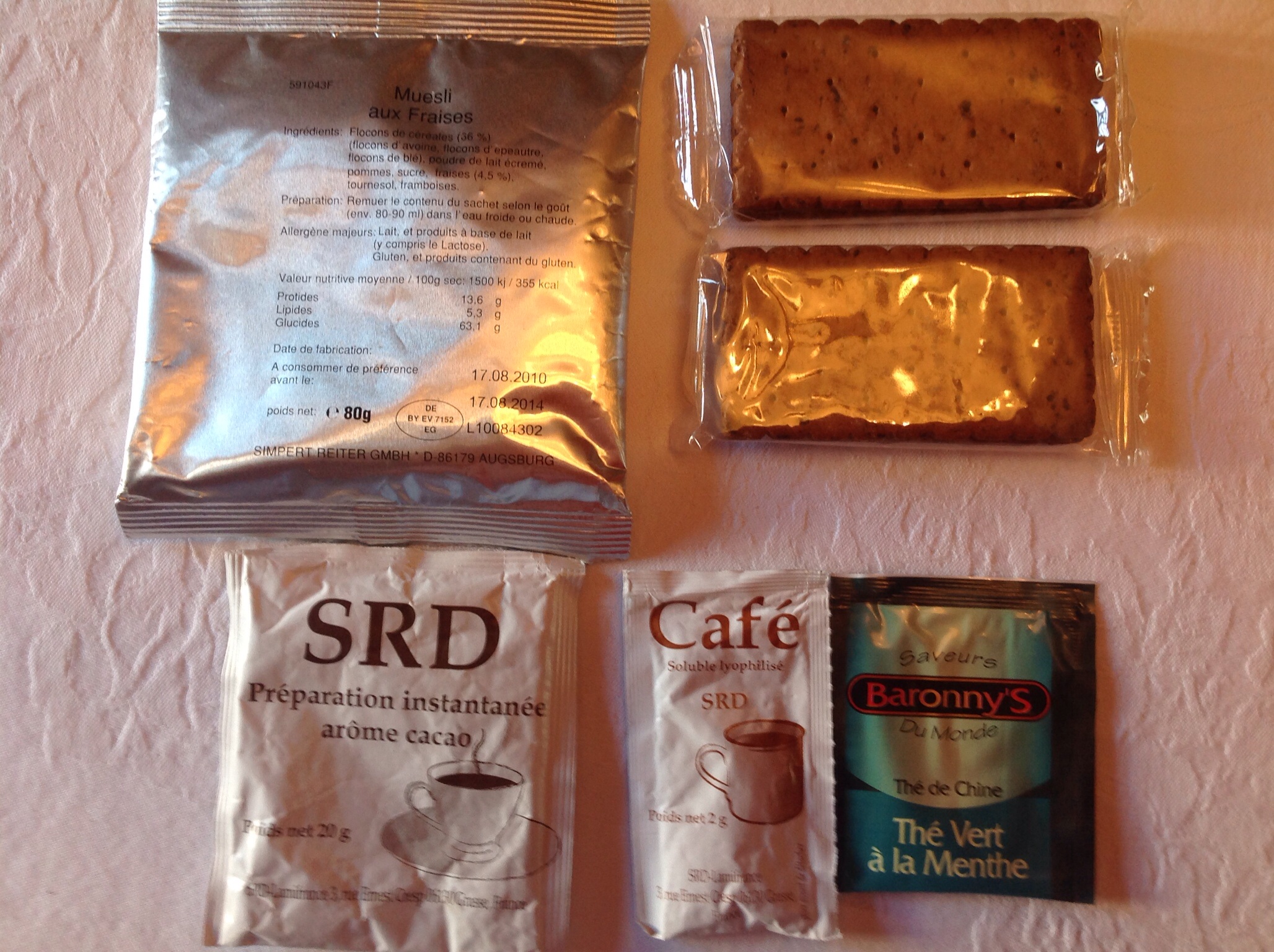 The French RCIR breakfast reminds me of the Spanish ration breakfast with its limited items. I'd be curious how the Spanish breakfast crackers compare with the french RCIR biscuit as to carbs and other essentials.