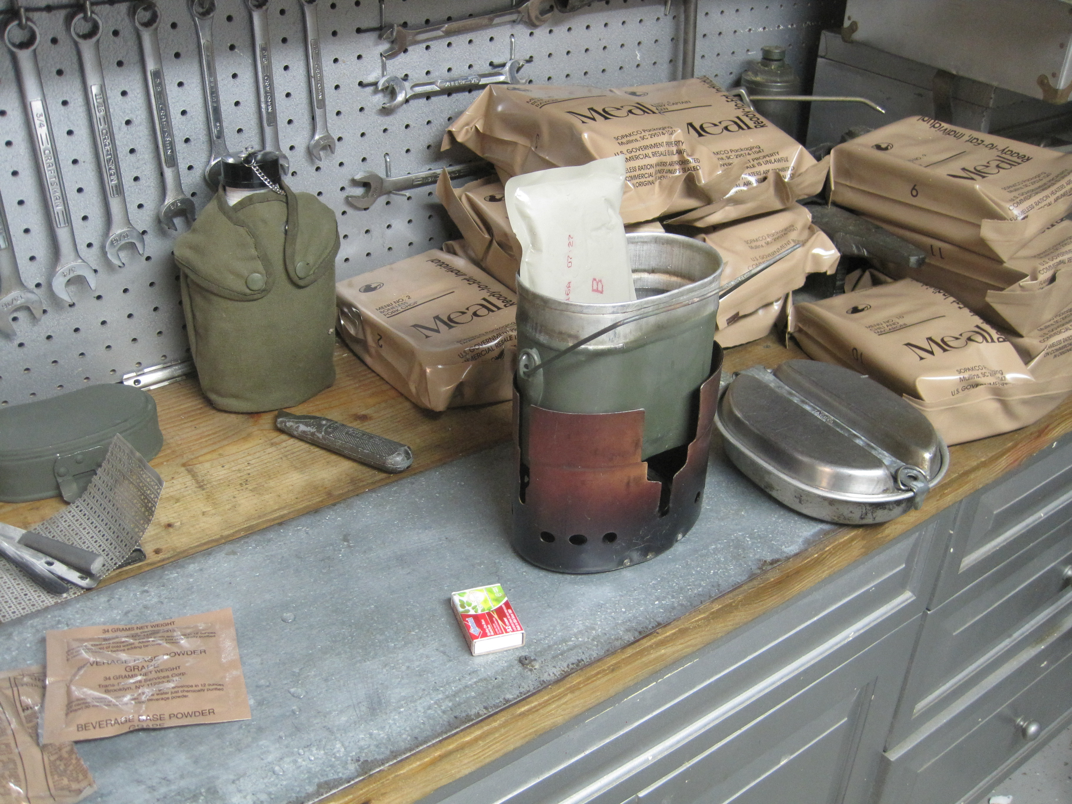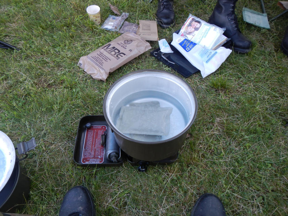 I used my "new" 1965 German Army fuel cooker to heat the entree´s Heating them up in boiling water always increase their taste than just heating up in the FRHs.