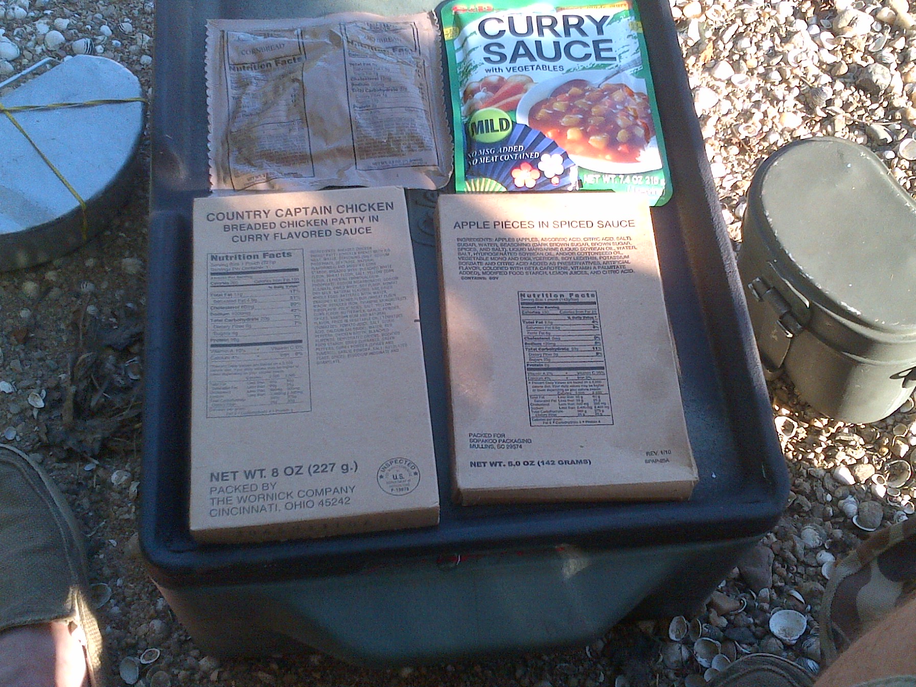 So I dug through my 2006 MRE stash and found Country Captain Chicken.. Flavored with 'American'