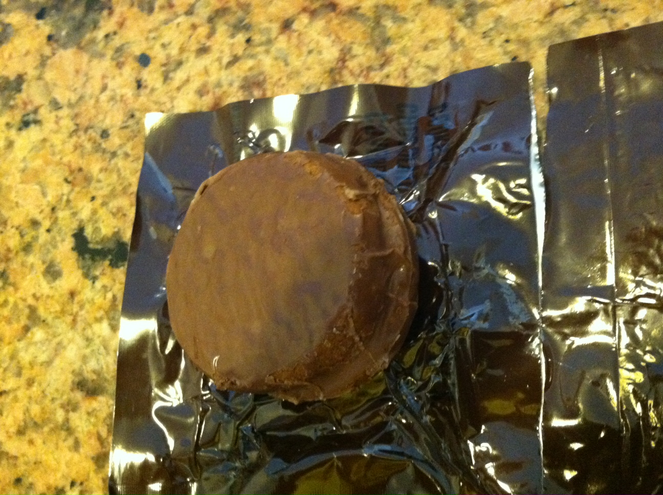 Appearance: A round chunk of chocolate wrapped in foil.