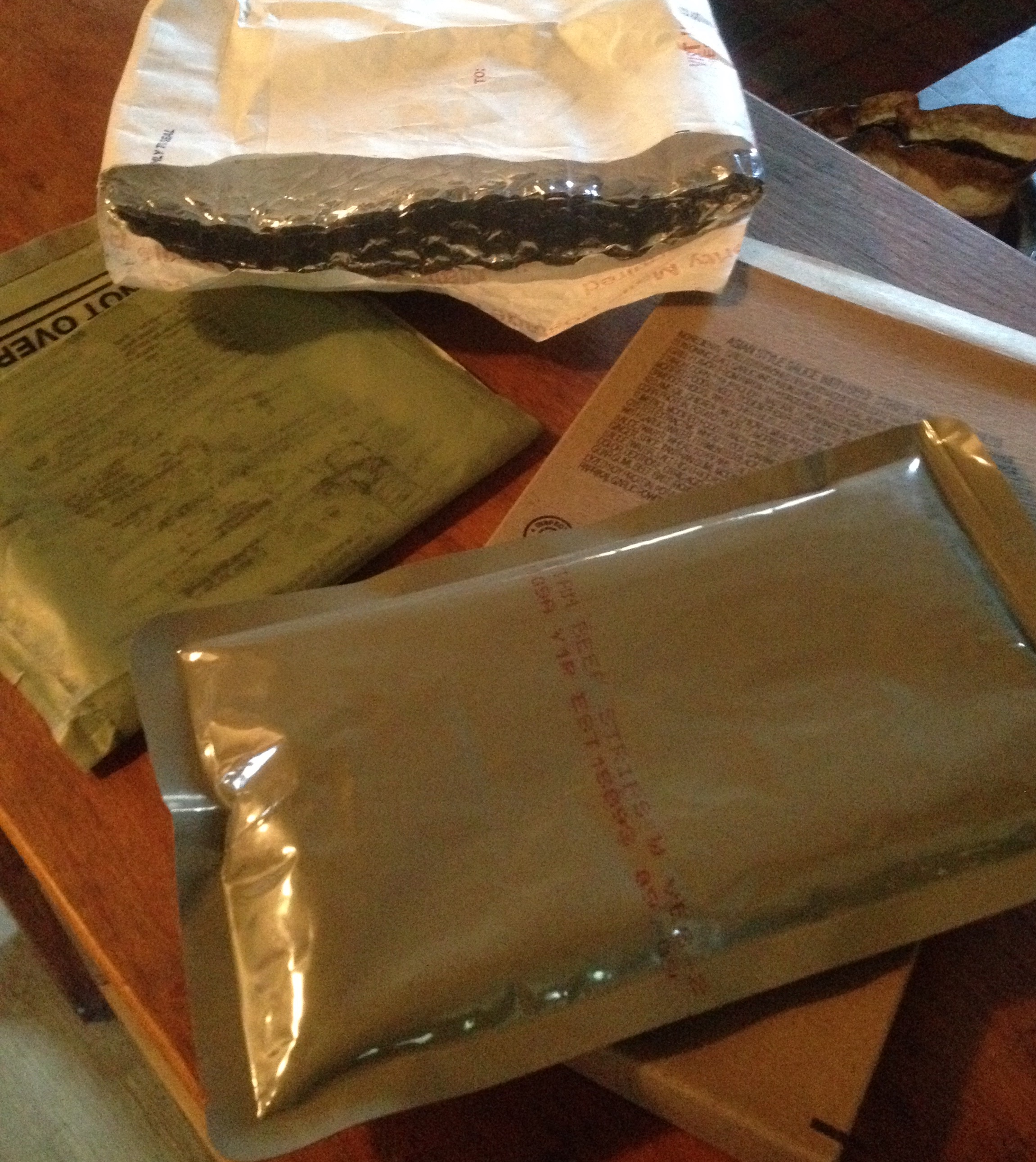 I'm on the lookout for some sort of a shallow rectangular, aluminum pan that I can put directly over my little stoves and just drop an MRE in a 1/2" of H20 in that. I almost always take along the stove so that I can have a hot hot hot beverage.
