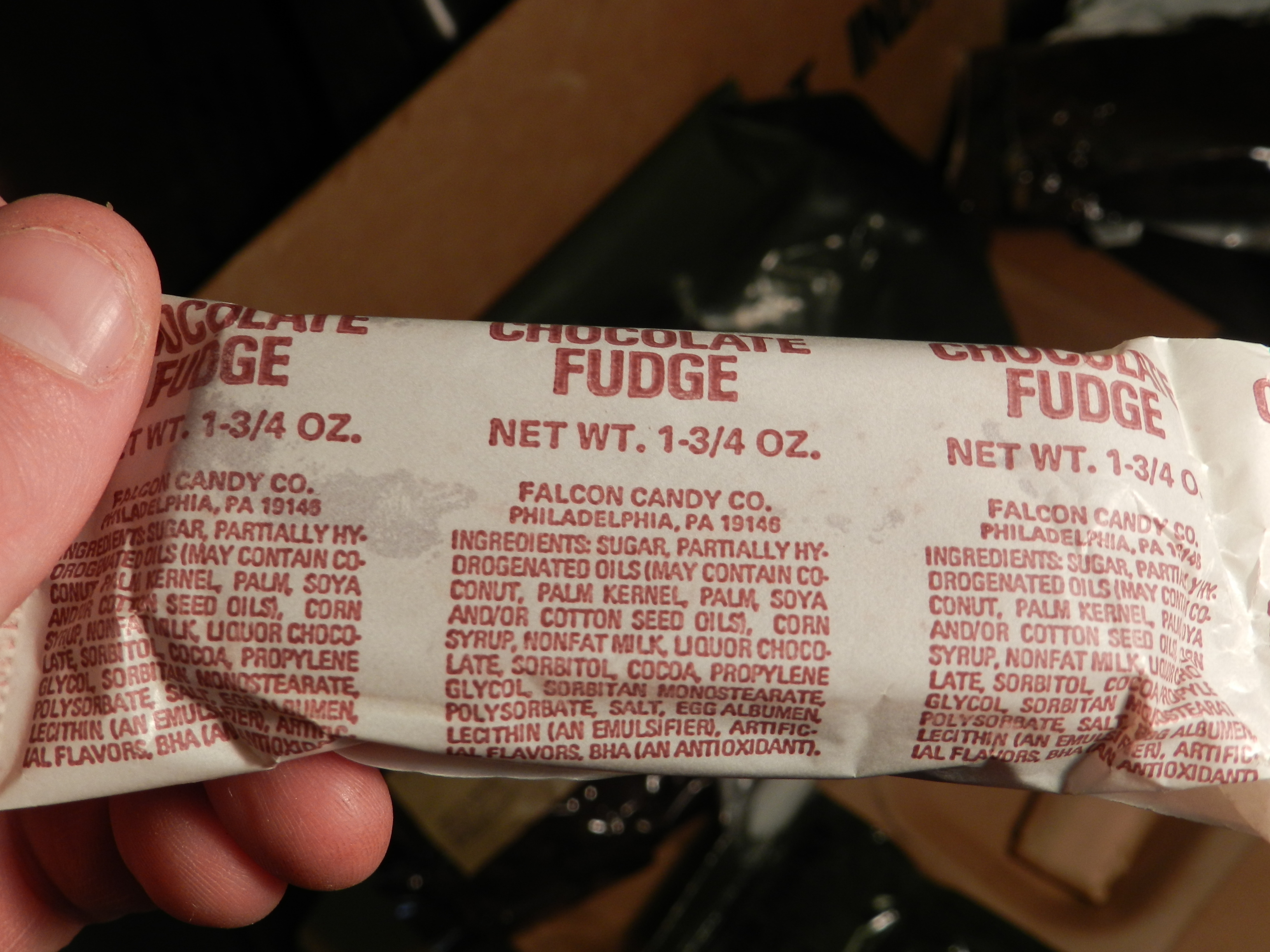 First off I am about to post another string of the finale of this Chocolate Fudge Bar from a 1983 Long Range Patrol Ration Chicken Stew..