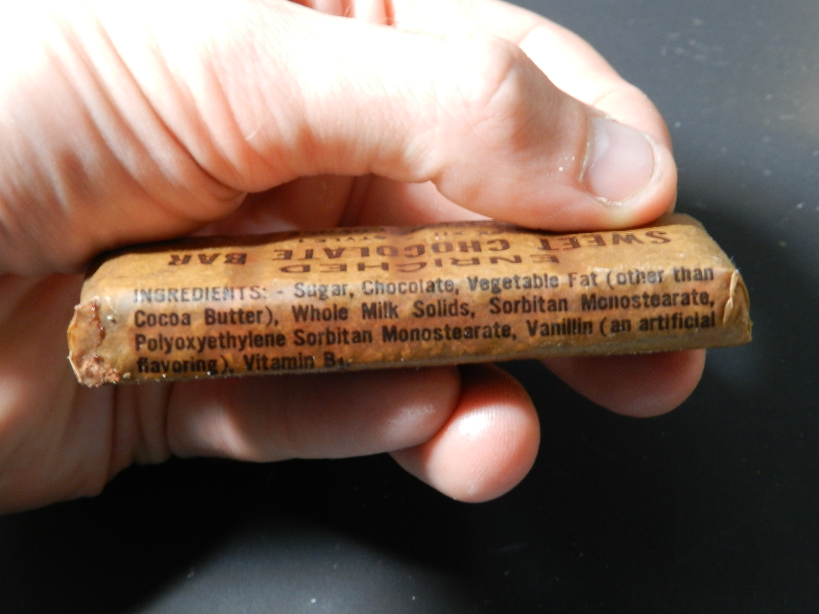 I will defend the 'idea' of the Cheese bar, I would assume the idea was to give some high calorie dairy item not in powdered form. Velveeta type cheese has a very high salt content and keeps a long time. High calories per OZ, I am sure it kept a long time.