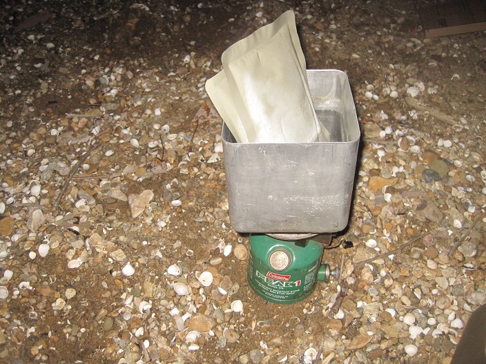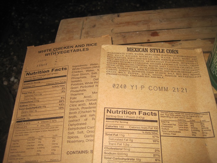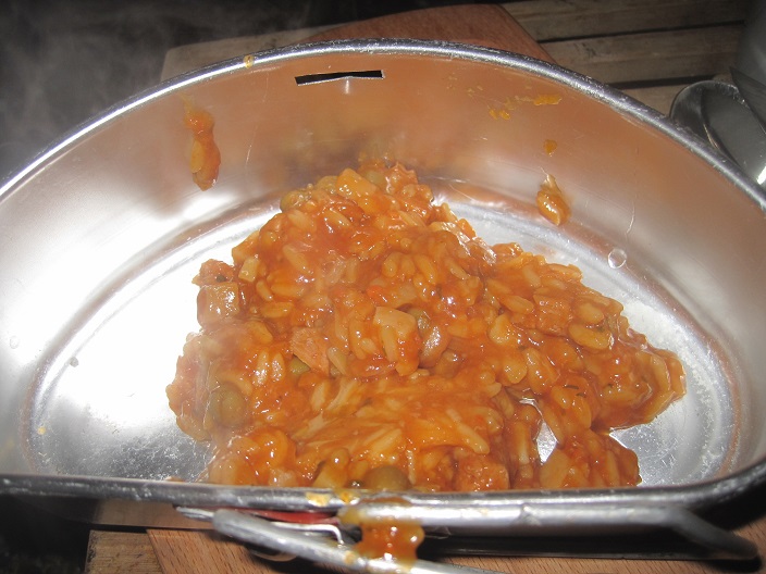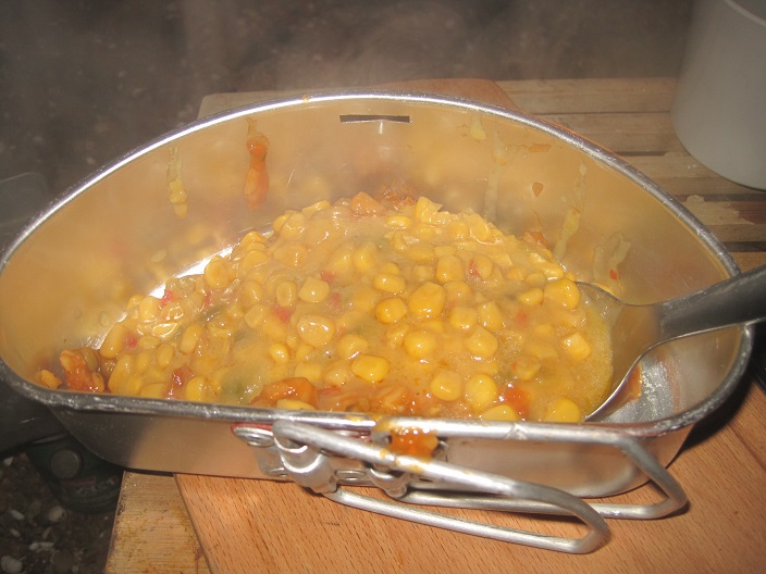 I went canoe camping yesterday and had this meal White Chicken and rice with Vegetables /Mexican Corn side dish.