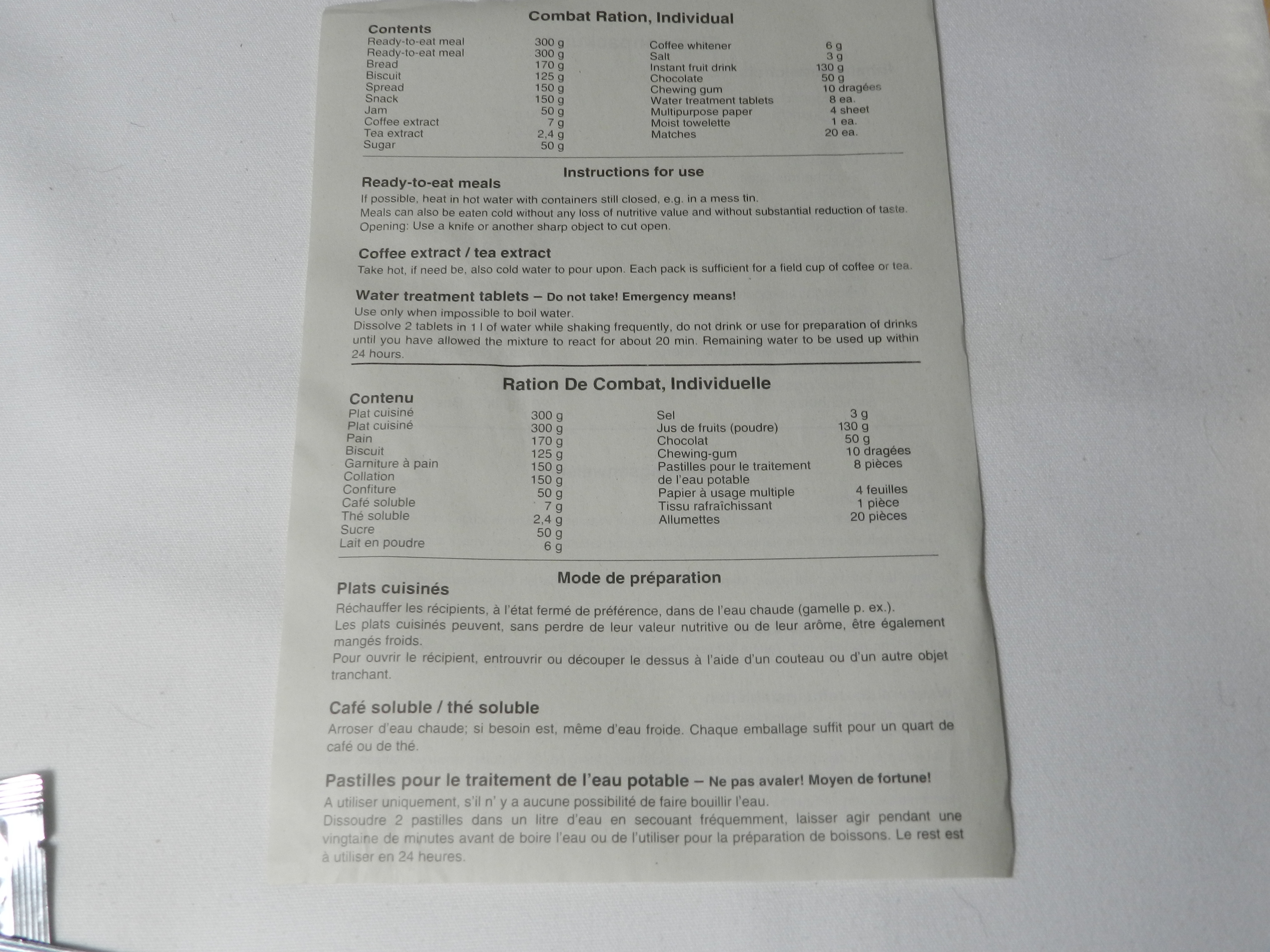 Reviews of rations from abroad - British ration packs, EPA, IMP, RCIR, etc.