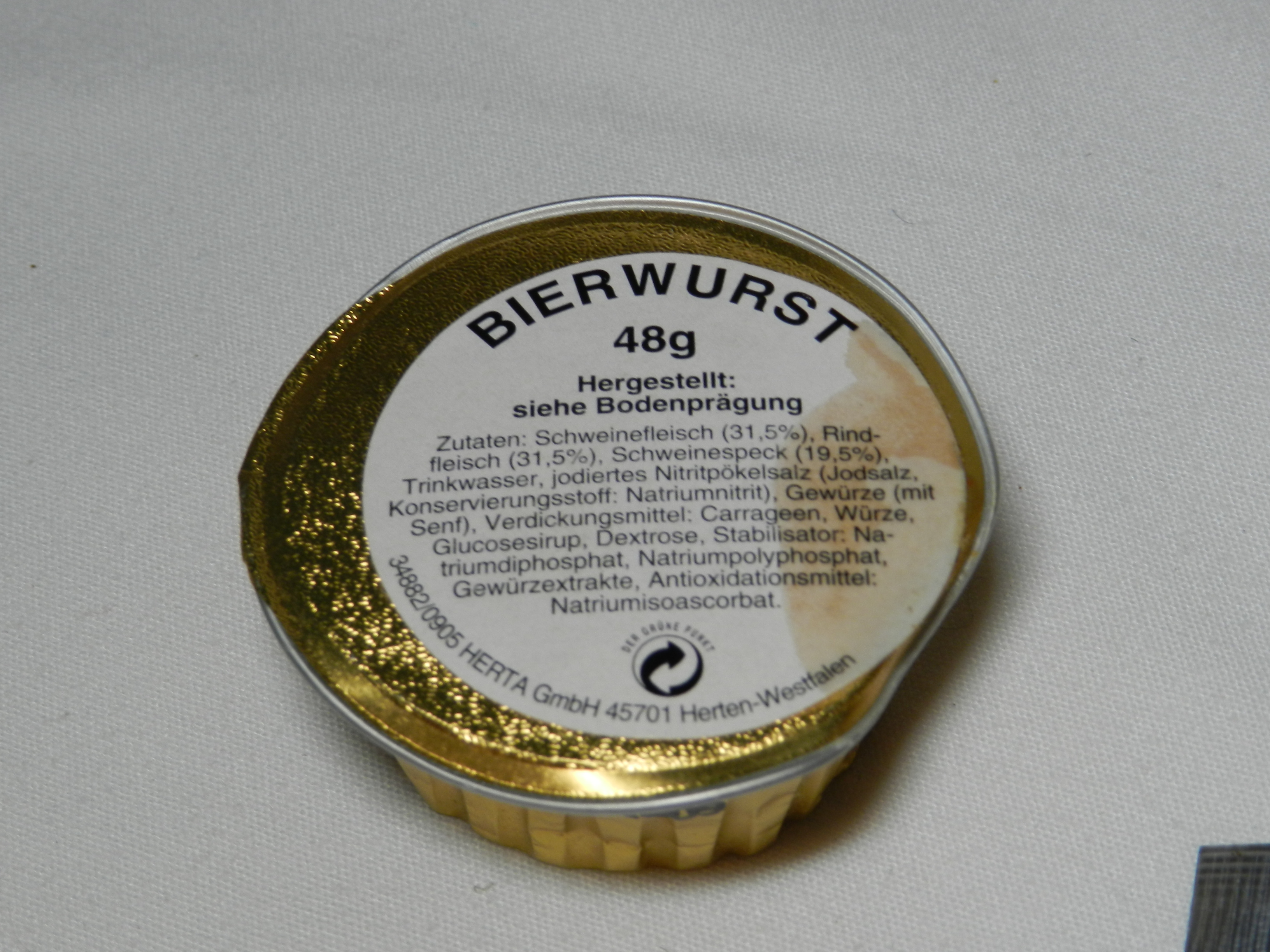 First off, I'll bet everyone can see if they look relatively closely at that one Bierwurst, that it leaked through the can.