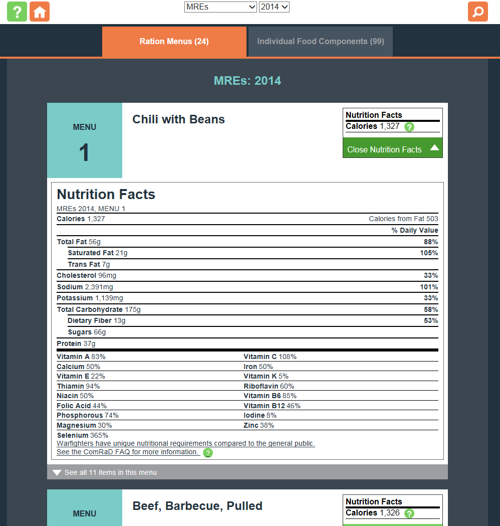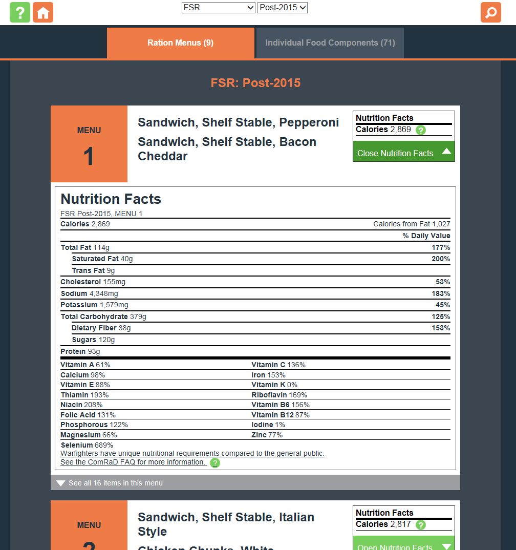 So if they're working with Natick it seems it's an official (albeit somewhat obscurely located) application. They don't list 2015 menu info yet though, here's hoping that's coming soonComRaD is a collaborative effort between the Human Performance Resource Center, Natick Soldier Research, Development, and Engineering Command, and United States Army Research Institute of Environmental Medicine.