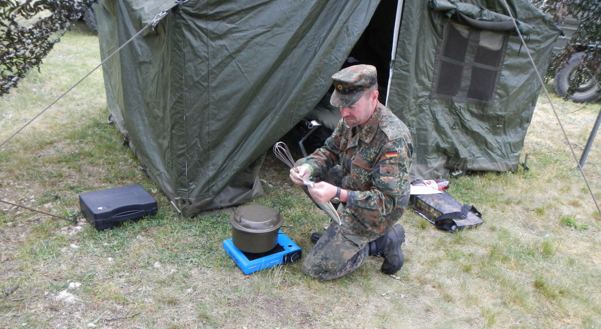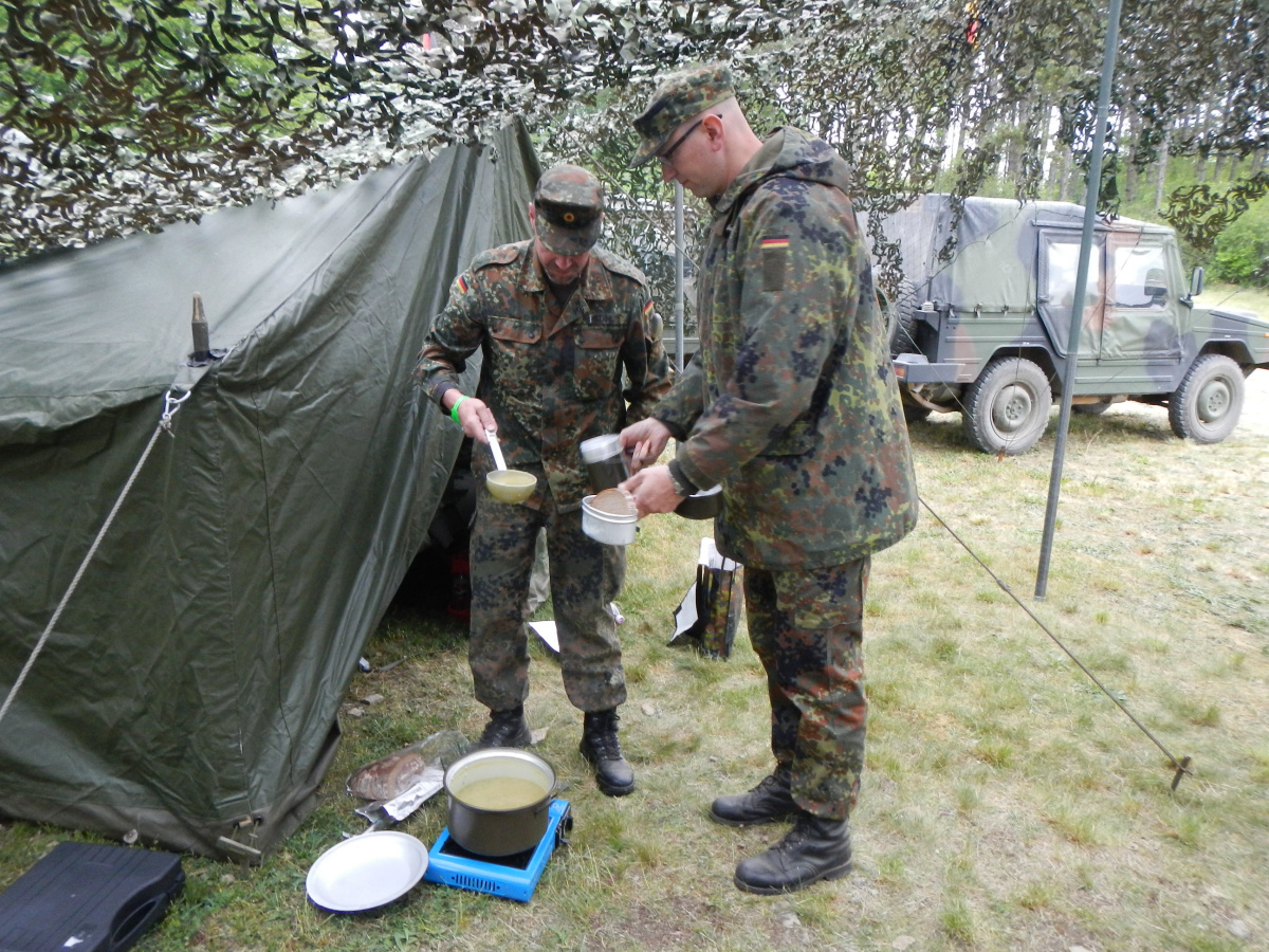 Boil 3 ltrs of water The freezedried 2005 (!) pea stew stir into boiling water cook for 10 min Enjoy your meal I had my drone with me and made a little video about the camp and the tour into the training area: