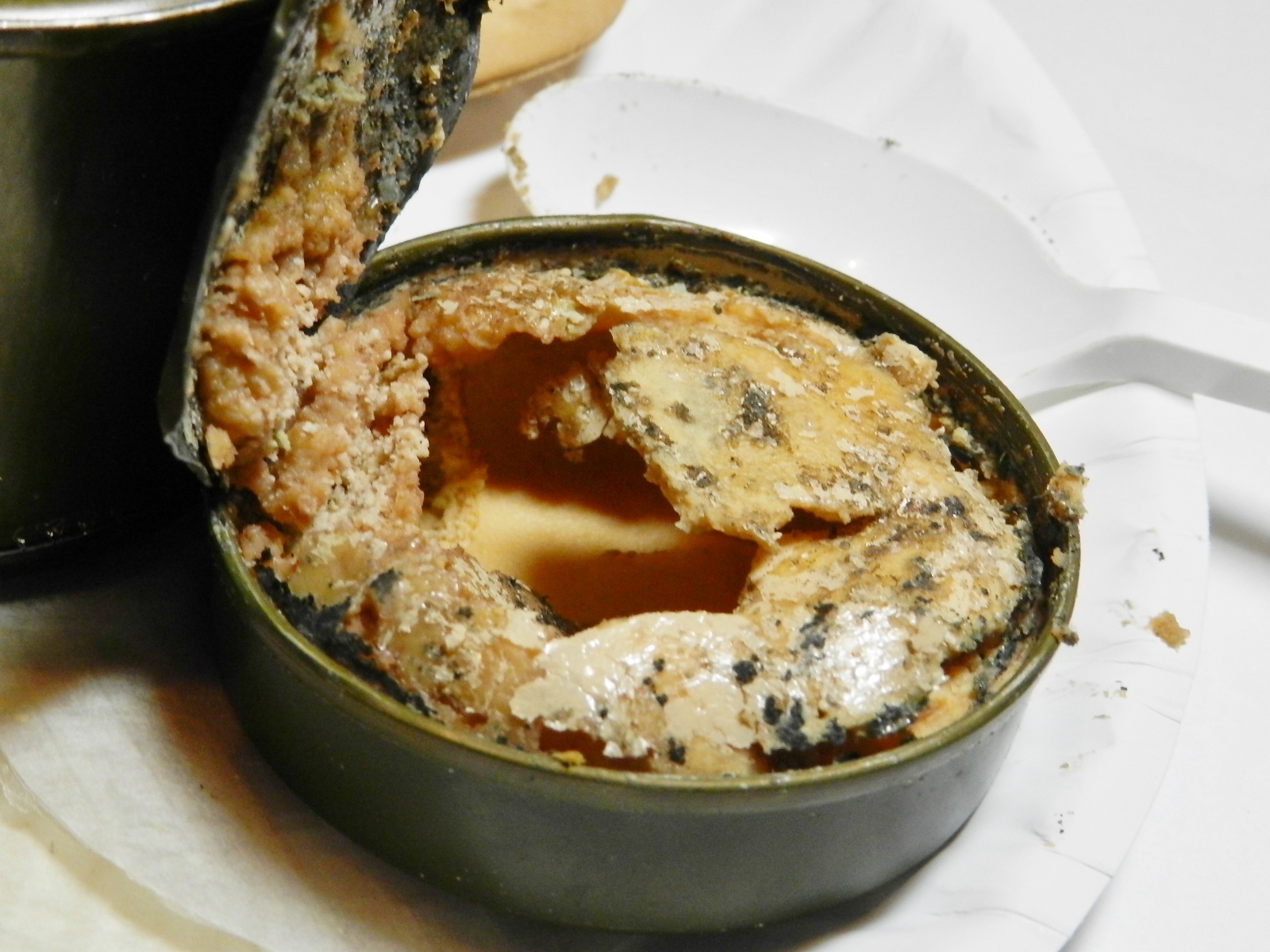 To Norton: Thankyou for looking and I'm happy you liked the pictures! I always carry a P-38 on my keychain, so I had to use that for a couple of these cans I had opened. Oh boy, you are lucky you didn't have to smell that awful cheese - I think it ranks top 3 worst smells I have ever had the displeasure of smelling in my life. Sorta thing that sticks on the back of your throat! hehe