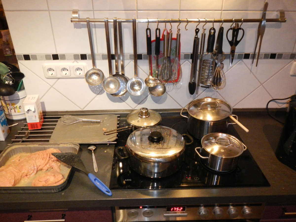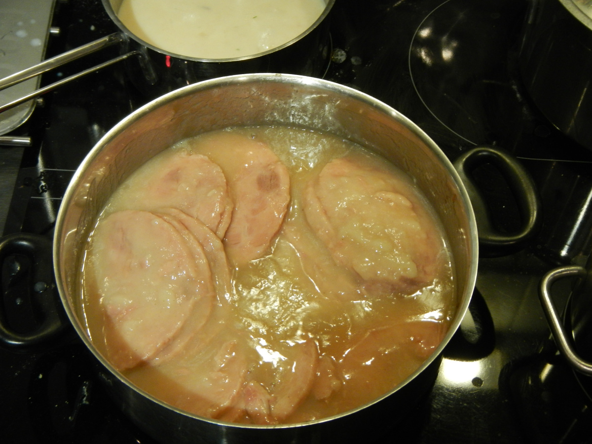 Cooking some sides and extra sauce, heating the turkey slice in the gravy