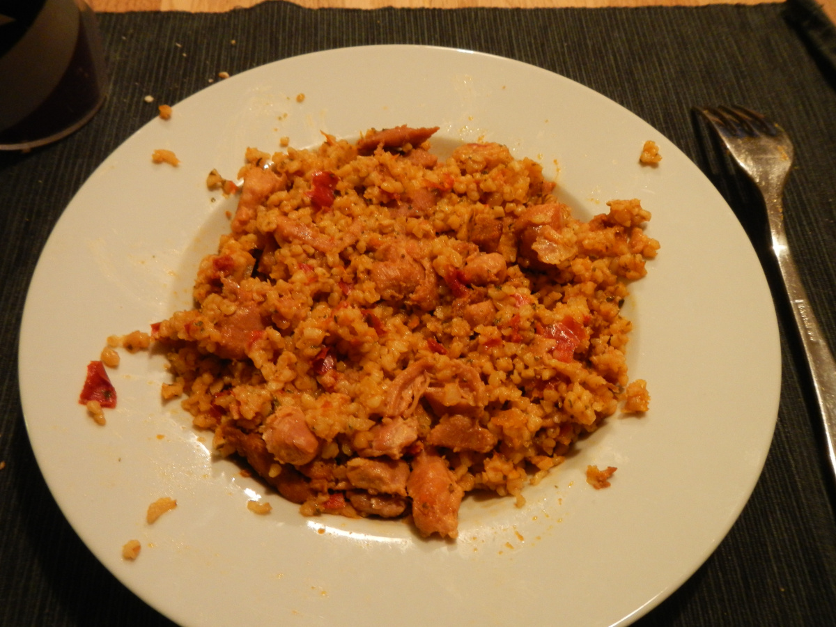 I guess bulgur is not a very common thing like rice or noodles so I liked the idea of it in a ration dish. The entree it self was "OK". A little bit bland - just add a dash of salt and the poultry was "dry". But at least an OK entree.