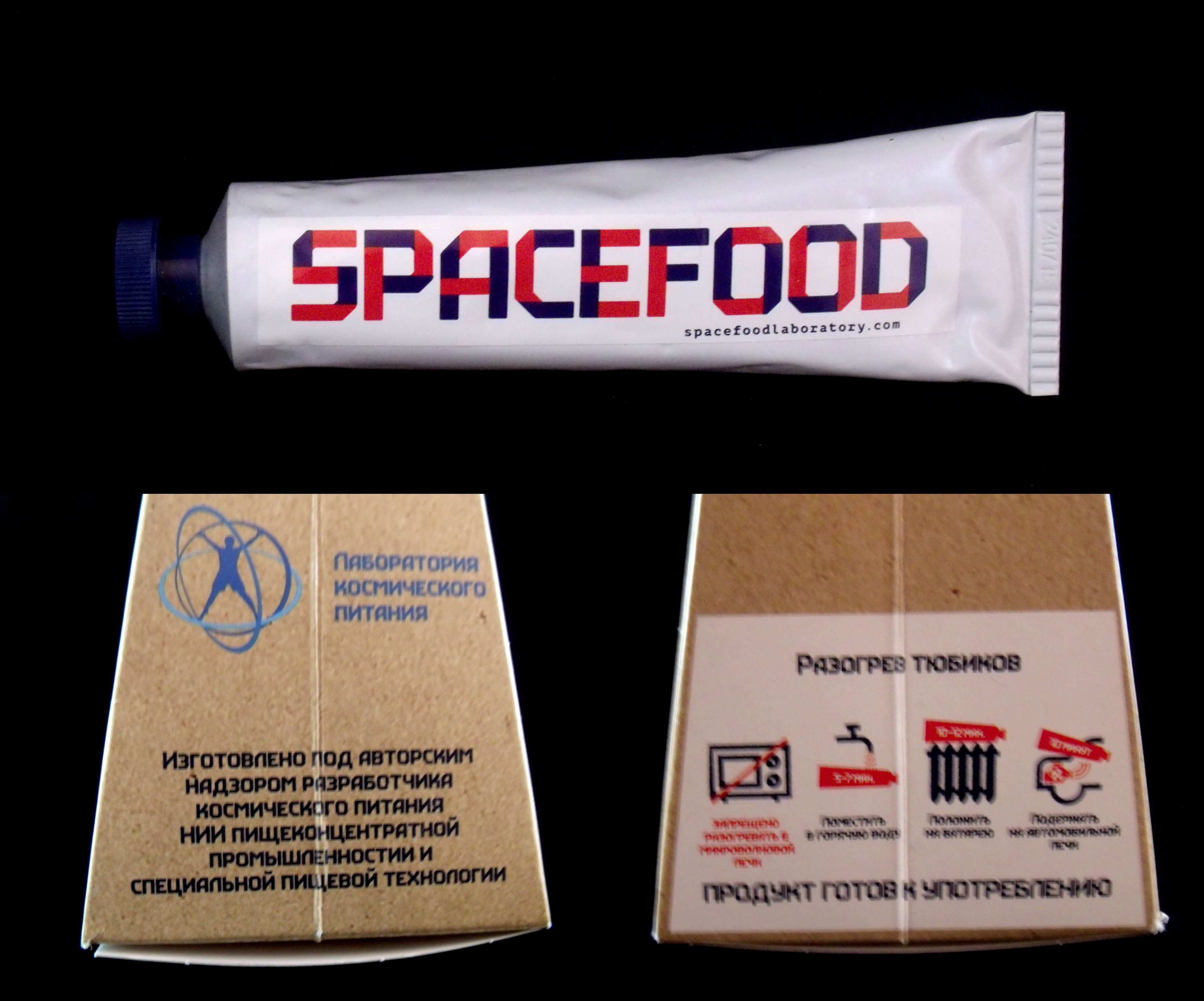 A few of these items are actual Russian space program items, and a few are civilian products meant to provide an authentic outer space ration experience. I've seen some actual entrees available, but the price tag has always been too high. In this review, the pork and the cottage cheese are both commercially available products that can be found in vending machines in Russia. The juice, tea, and candy are made for the space program - although they may have been overproduction, factory seconds, etc.