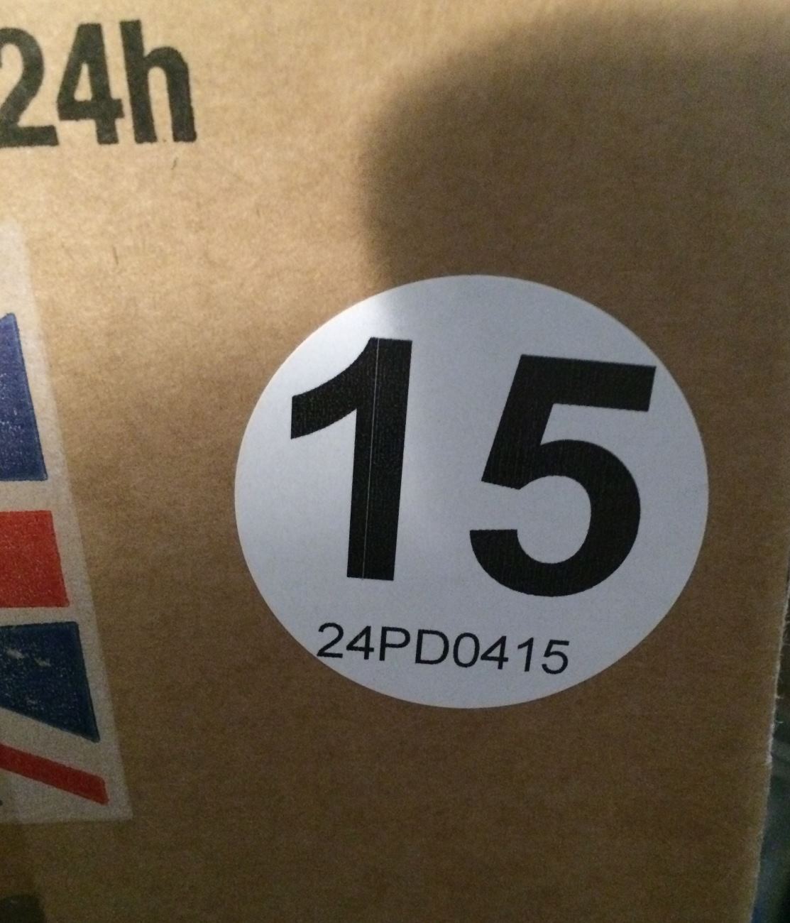 Sticker indicates; "15" indicates menu #15, "24" for 24 hour ration version, "PD" I have always assumed meant packaged date, "0415" refers to the date April 2015.