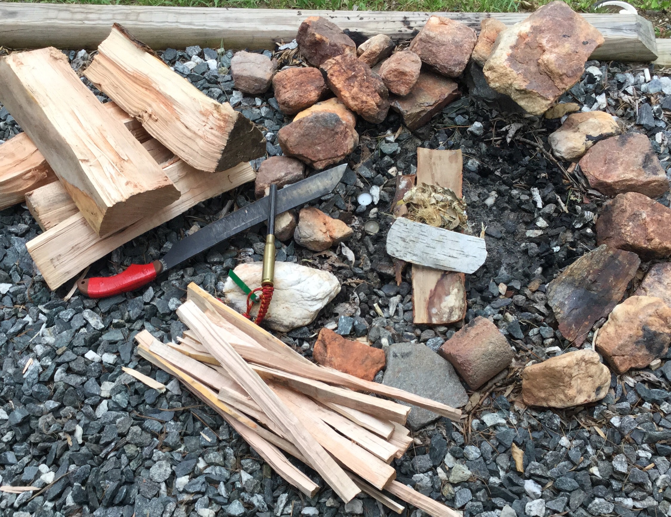 First, I used the Parangatang and one of the logs as a baton to split one of the other pieces into kindling. When I go on solo treks into the woods, I go "minimalist", so fire starting from scratch is the only way to go for me.