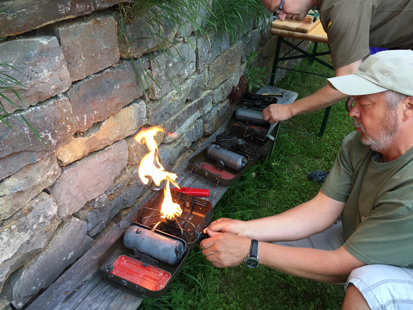 I also have three camping stoves, two of these German Army 1965 Enders fuel cooker we did a little "workshop" at the neighbor today while having BBQed