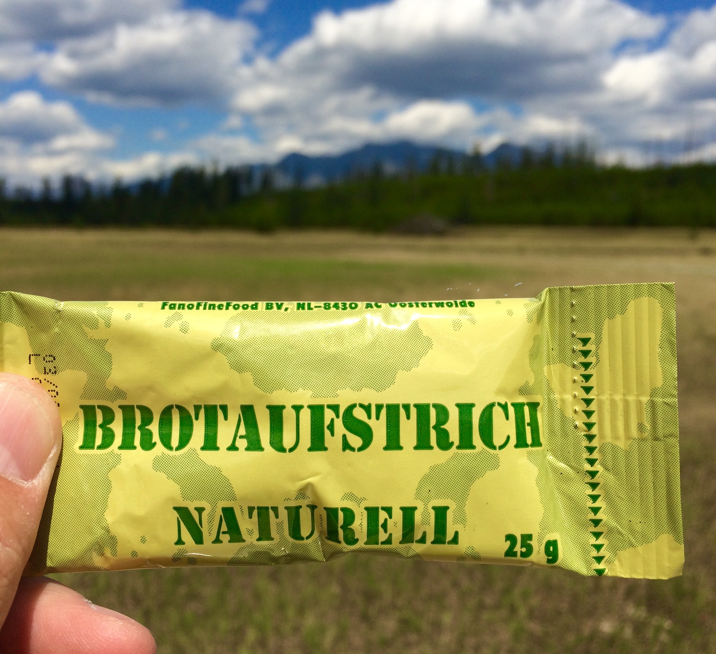 This Typ II came with the cevapcici and the goulash with potatoes. For lunch I opted to go with the goulash. I placed the entree in my ration heater while I drove to a good spot. I've found the ration heater works great for not only retort pouches, but also the tins from ePAs, IRPs, etc. It's getting a lot of use on this trip, and I've been very pleased with it.