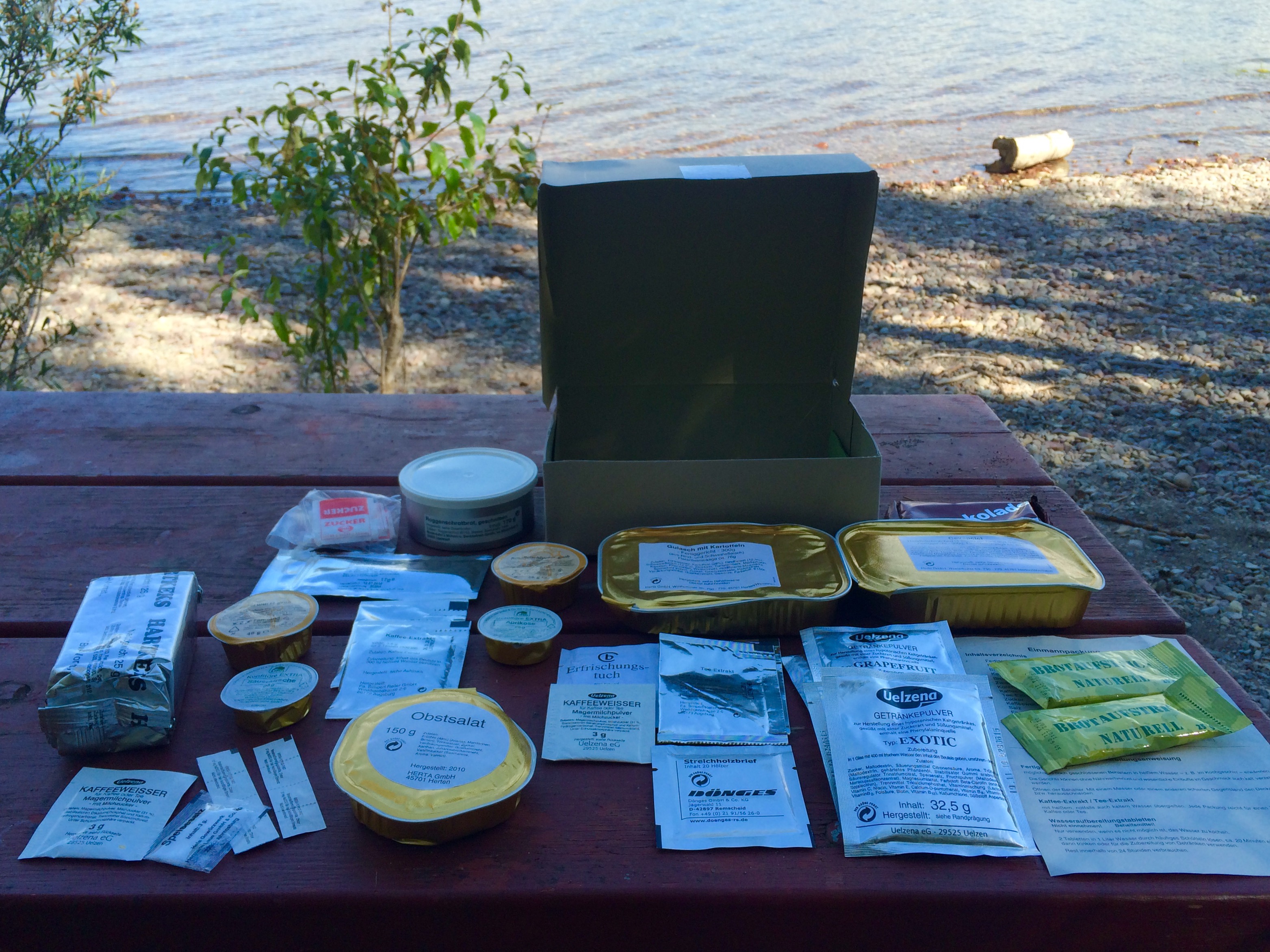 This Typ II came with the cevapcici and the goulash with potatoes. For lunch I opted to go with the goulash. I placed the entree in my ration heater while I drove to a good spot. I've found the ration heater works great for not only retort pouches, but also the tins from ePAs, IRPs, etc. It's getting a lot of use on this trip, and I've been very pleased with it.