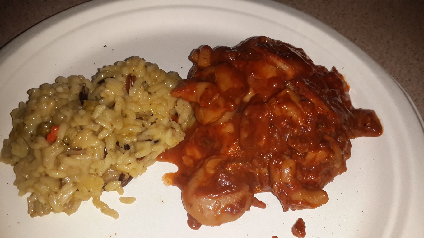 This meal was surprisingly good. The cheese tortelini was fantastic, good taste and the tomato sauce was really nice. The wild rice pilaf, was a bit bland, but ok spiced up with a little soy sauce.