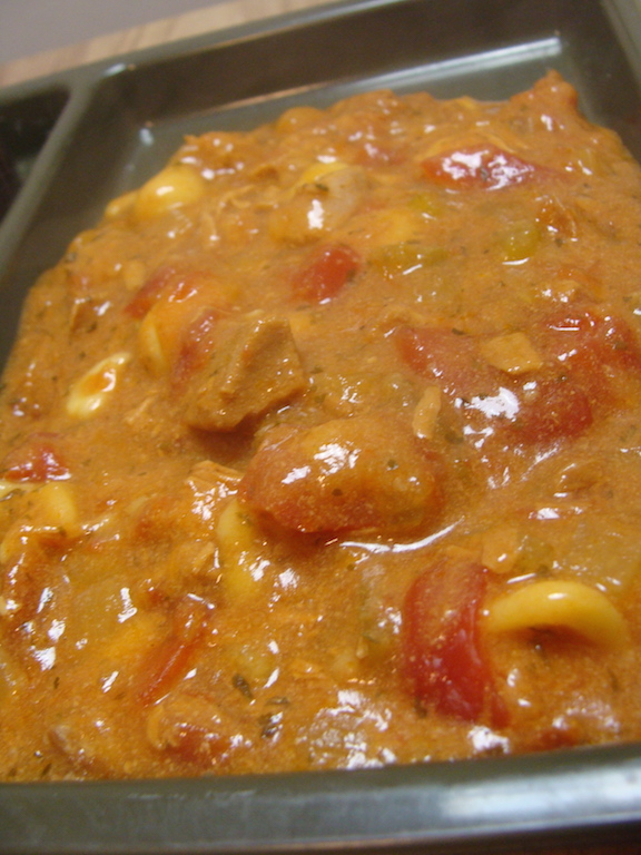 The entrée was almost so good as the lunch. Real tomato chunks, Italian spices, I added only a bit of salt. The cheese was normal processed cheddar – decent. The pears had a good sweetness level and a nice consistency (not too soft). The sweet biscuits were best with the chocolate spread , which contained a solid amount of cocoa (actually better than the chocolate).