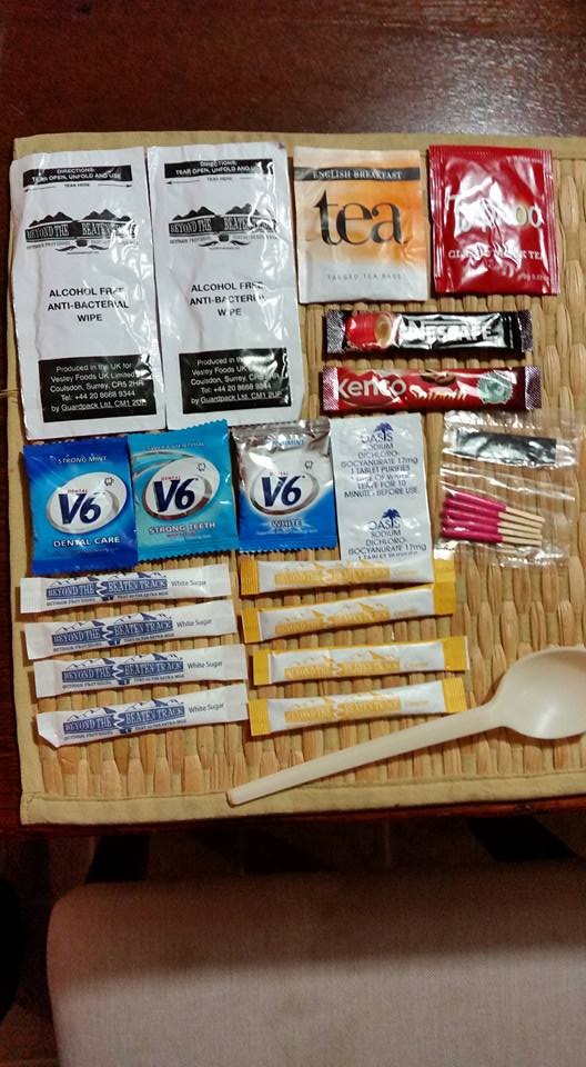 First up we have the big "Brew Kit", which contains a rather large spork, alcohol-free wipes, 2 tea, 2 coffee, 4 sugar and 4 creamer. Also 3 different types of gum, matches and water purification tablets.