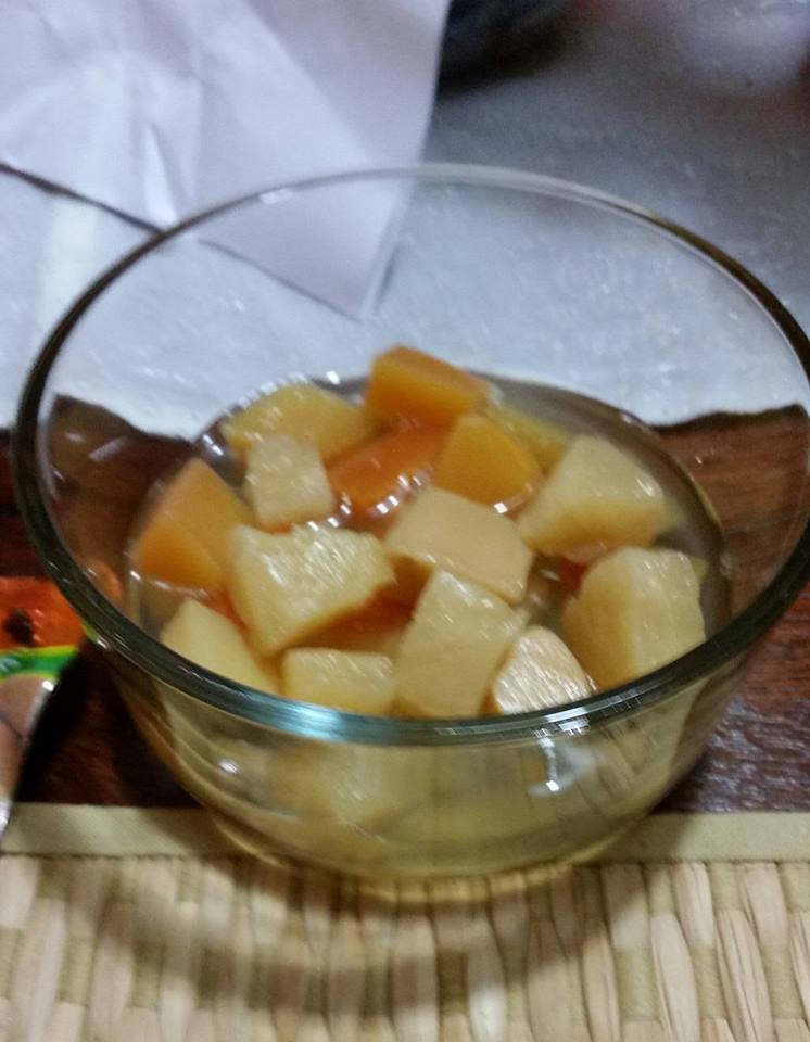 The Fruit Cocktail was interesting to say the least.... we have only 3 fruits present: pineapple, papaya and guava. Fruit cocktail you would normally get here, like a Del Monte, would include peaches, pear, pineapple and maybe cherries. While the flavours seemed to meld together like most tinned fruit cocktails, with no discernible individual flavours, each fruit at least had its own distinct texture which certainly helped make it all better. The pineapple of course being rather dense and fibrous, the papaya being rather mushy and the guava being a happy-medium between the other two.
